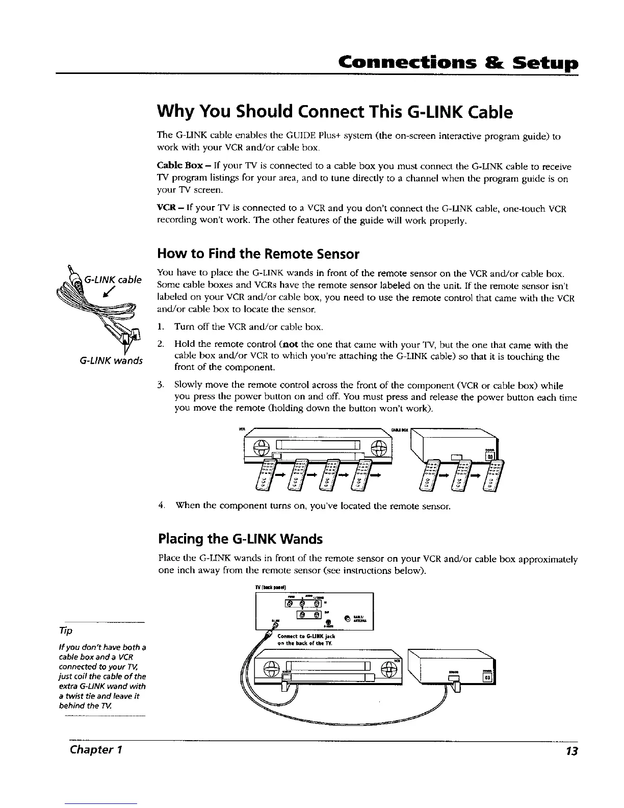 VCR- If your TV is connected to a VCR and you don't connect the G-LINK cable, one-touch VCR