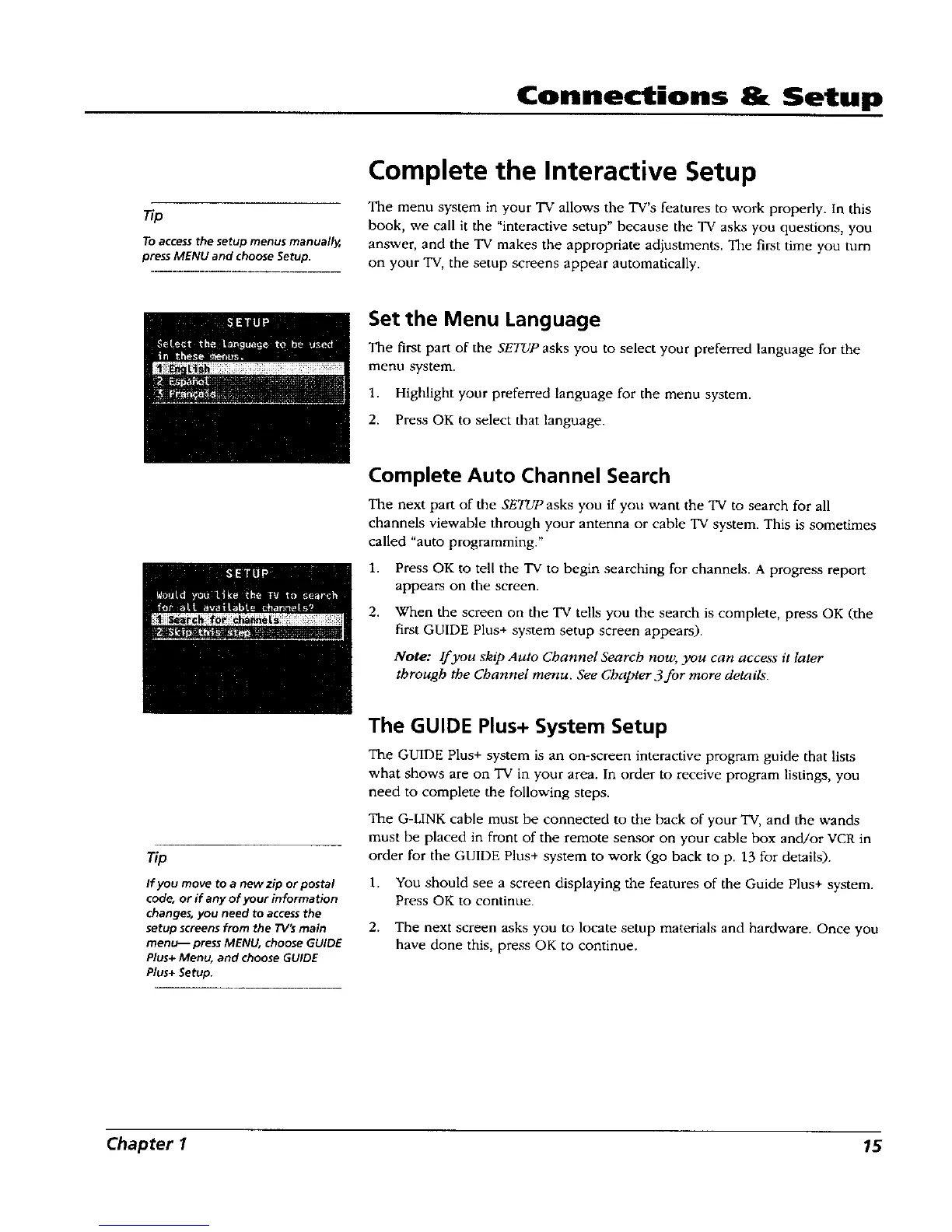 book, we call it the "interactive setup" because the TV asks you questions, you