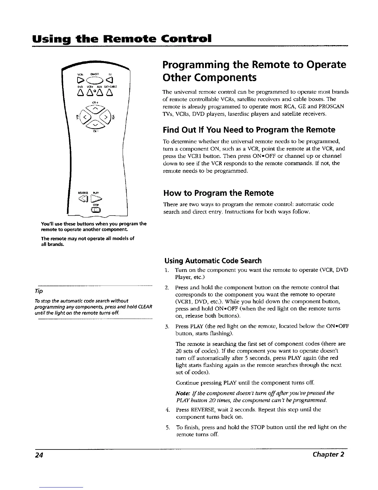 remote is already programmed to operate most RCA, GE and PROSCAN