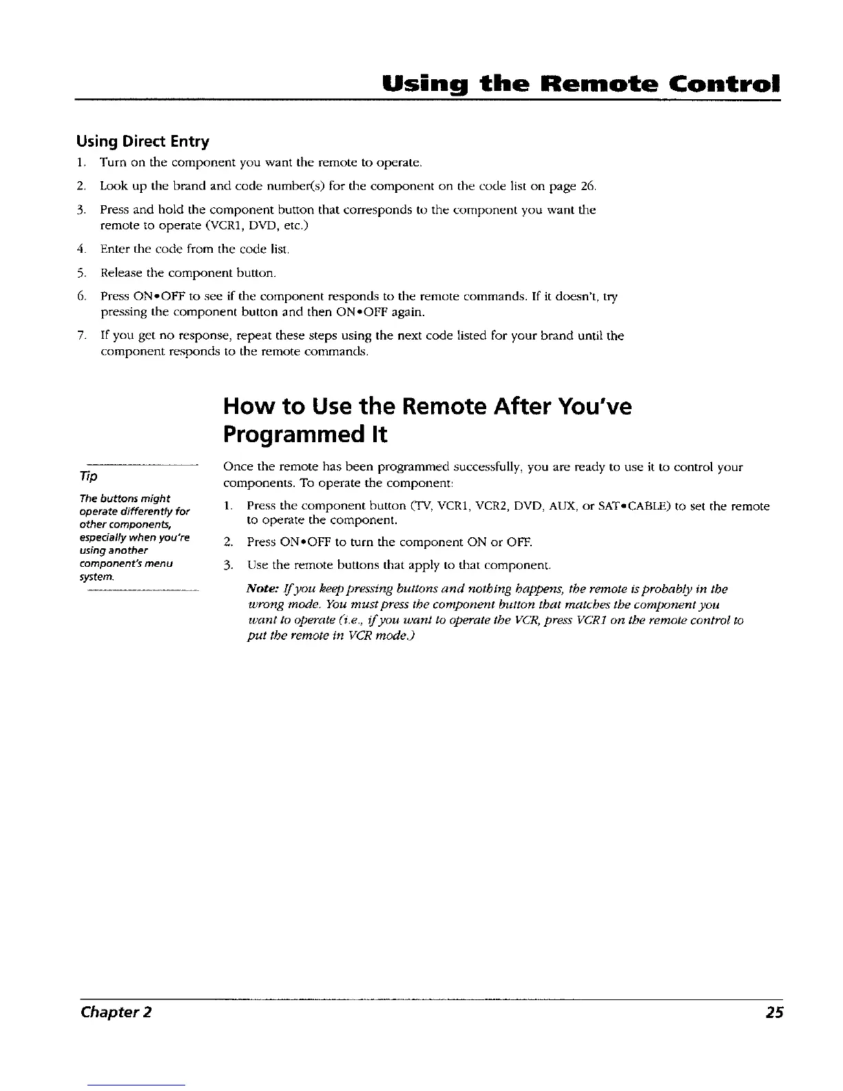 Note: If you keep pressing buttons and nothing happens, the remote isprobably in the
