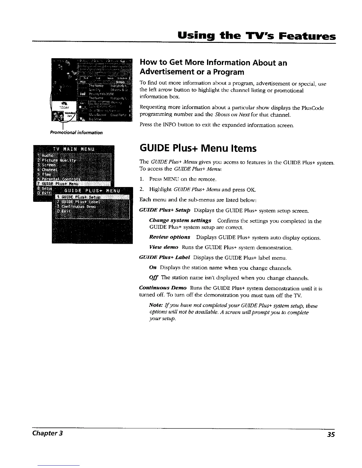 The GUIDEPlus+ Menu gives you access to features in the GUIDE Plus+ system.