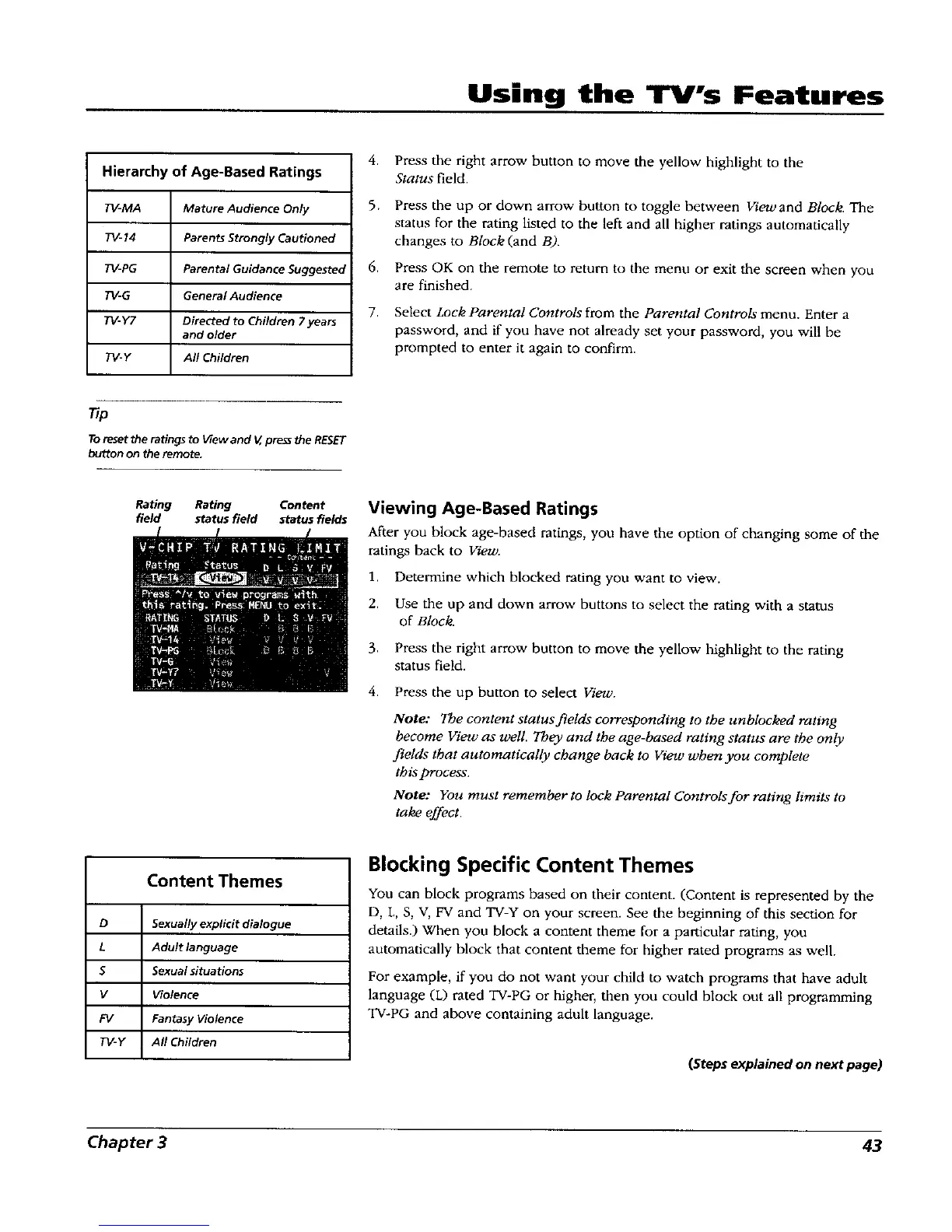 D, L, S, V, FV and TV-Y on your screen. See the beginning of this section for