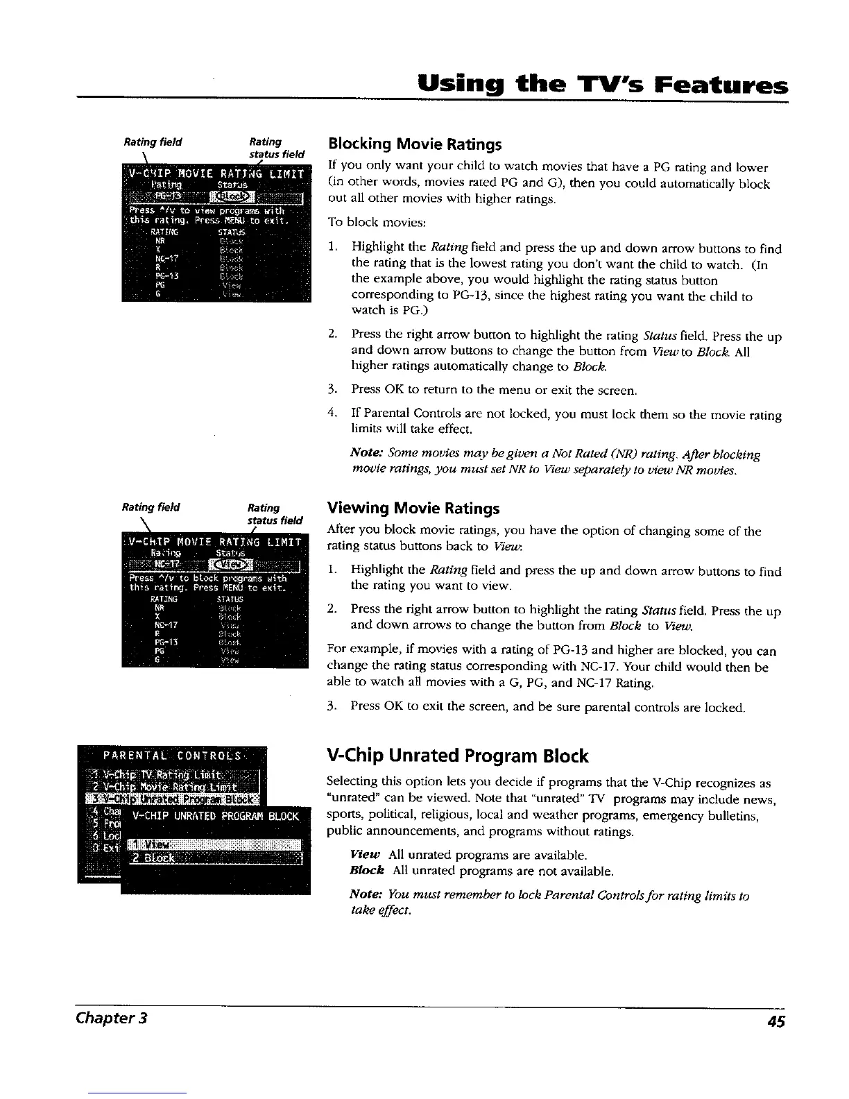 "unrated" can be viewed. Note that "unrated" TV programs may include news,