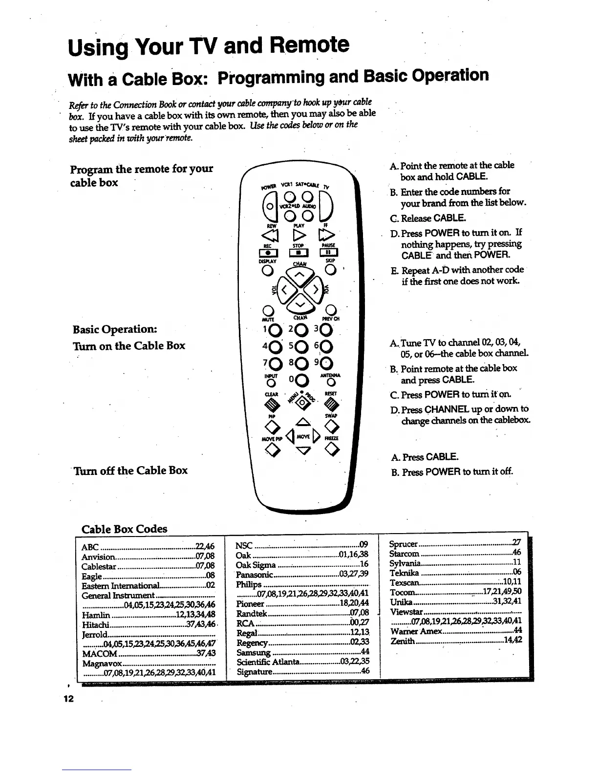 to use the TV's remote with your cable box. Use the codes behnaor on the