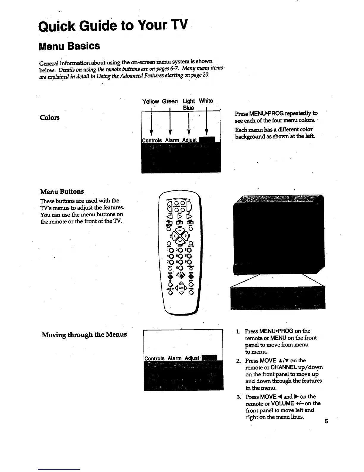 below. Details on using the remote buttons are on pages 6- 7. Many menu items