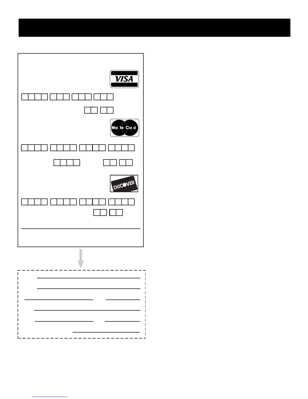 order form with credit card information, money order or