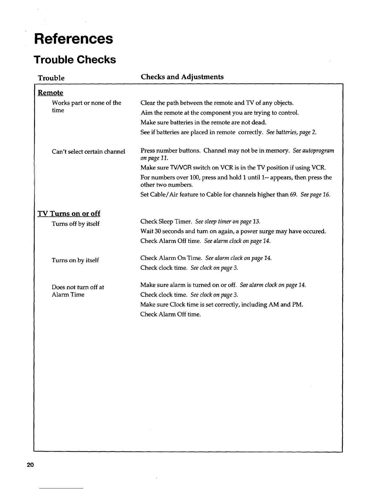 Check Alarm On Time. See alarm clock on page 14.