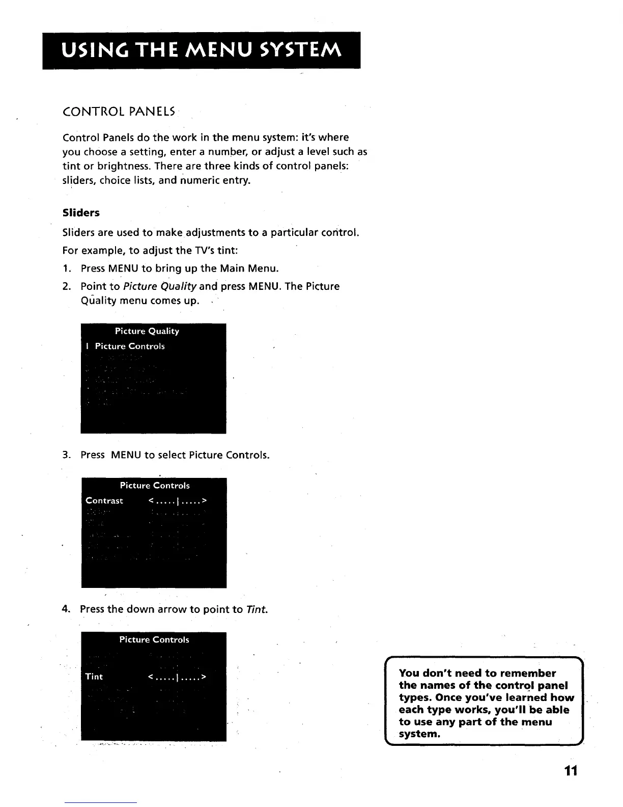 tint or brightness. There are three kinds of control panels:
