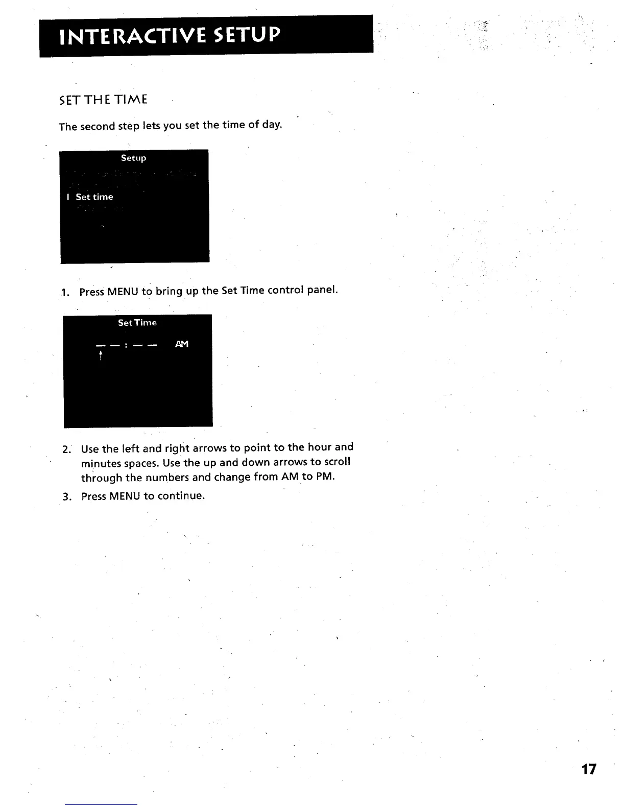 1. Press MENU to bring up the Set Time control panel.