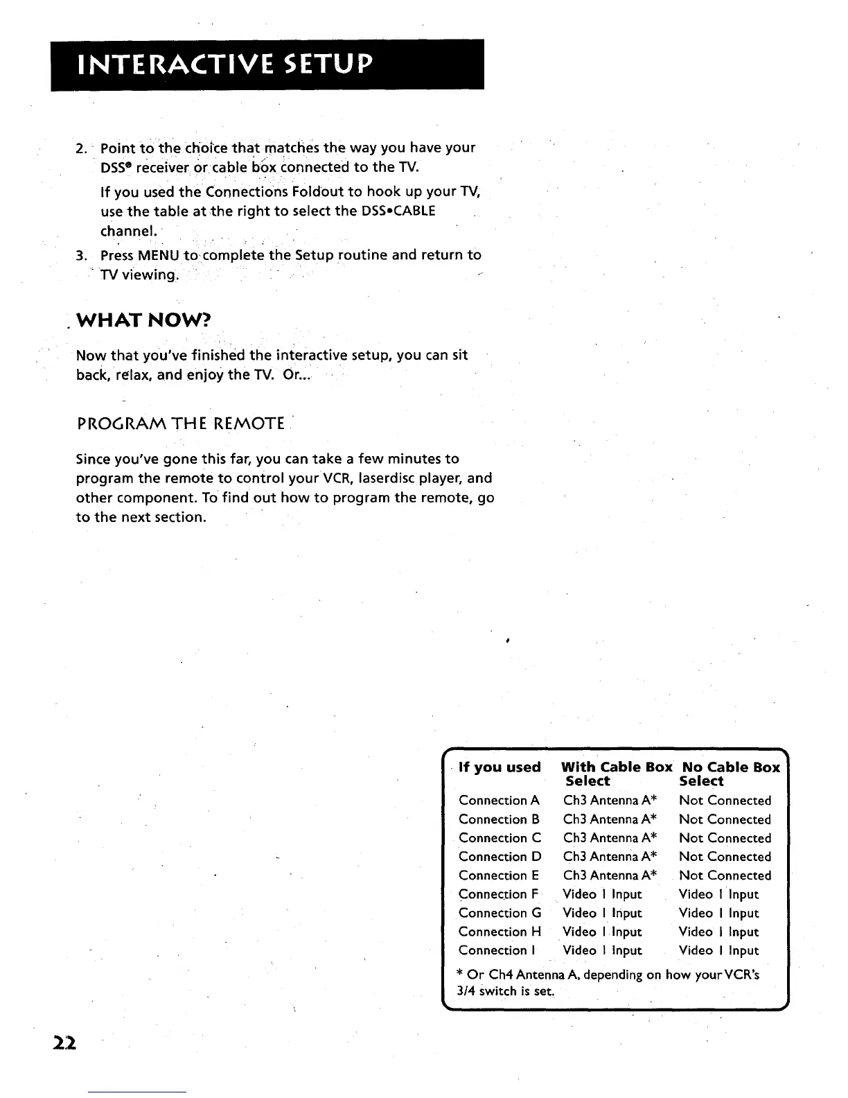 * Or Ch4 Antenna A, depending on how yourVCR's