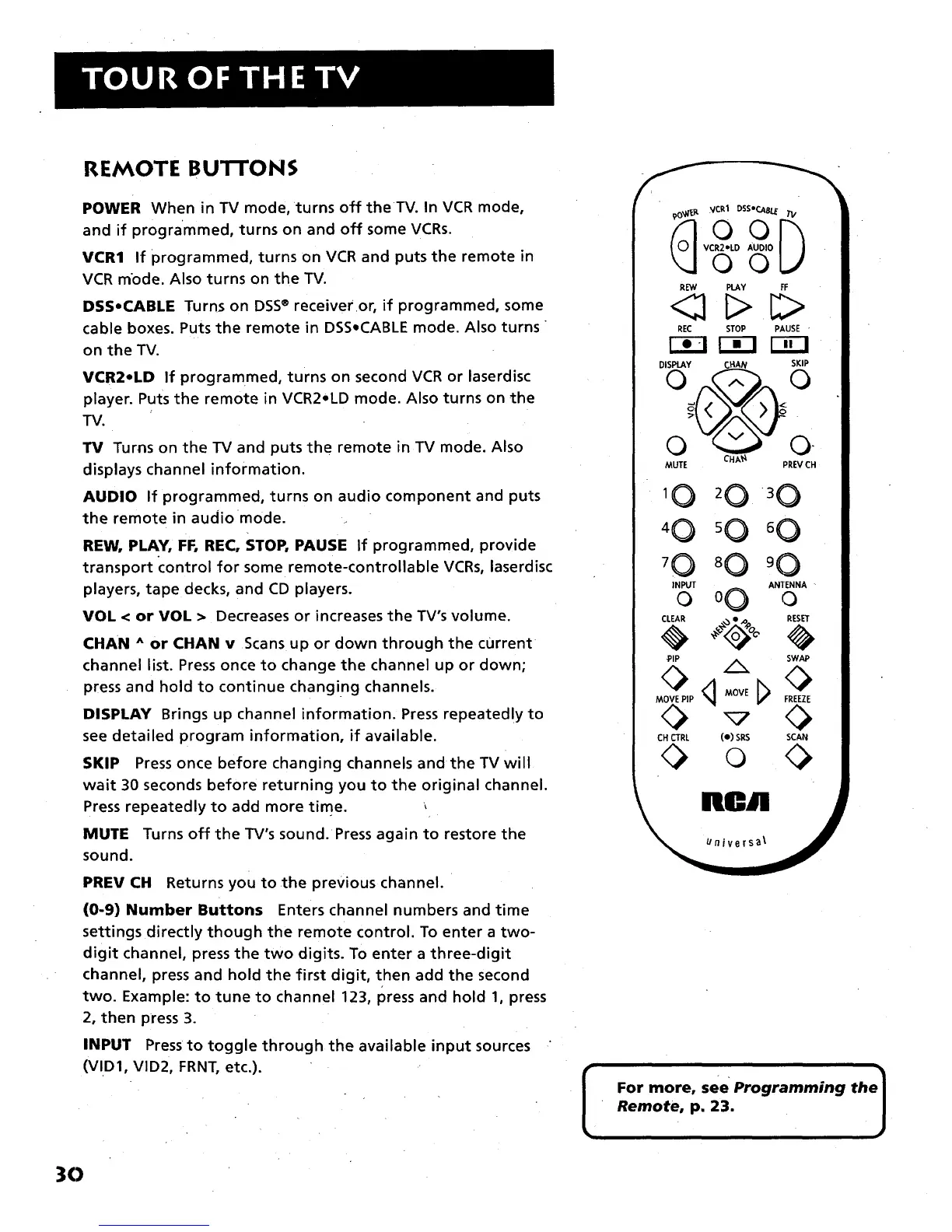 POWER When in TV mode, turns off the TV. In VCR mode,