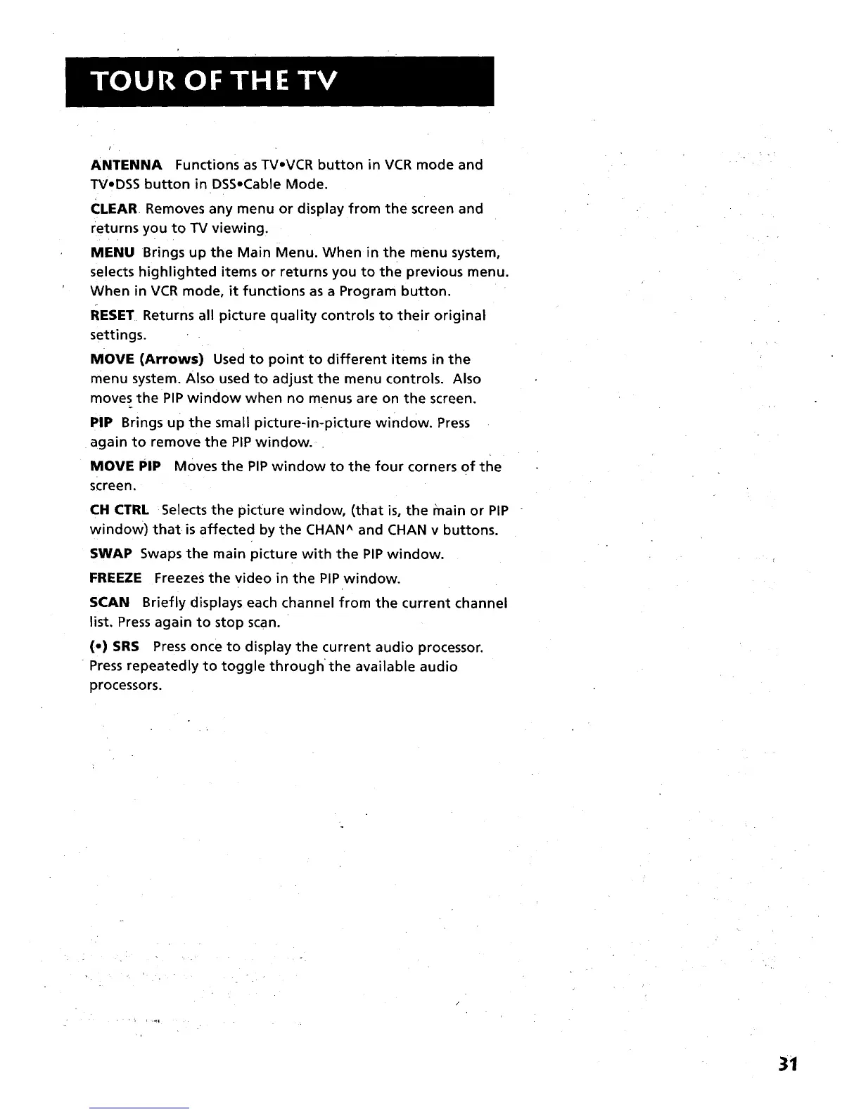 ANTENNA Functions as TV.VCR button in VCR mode and