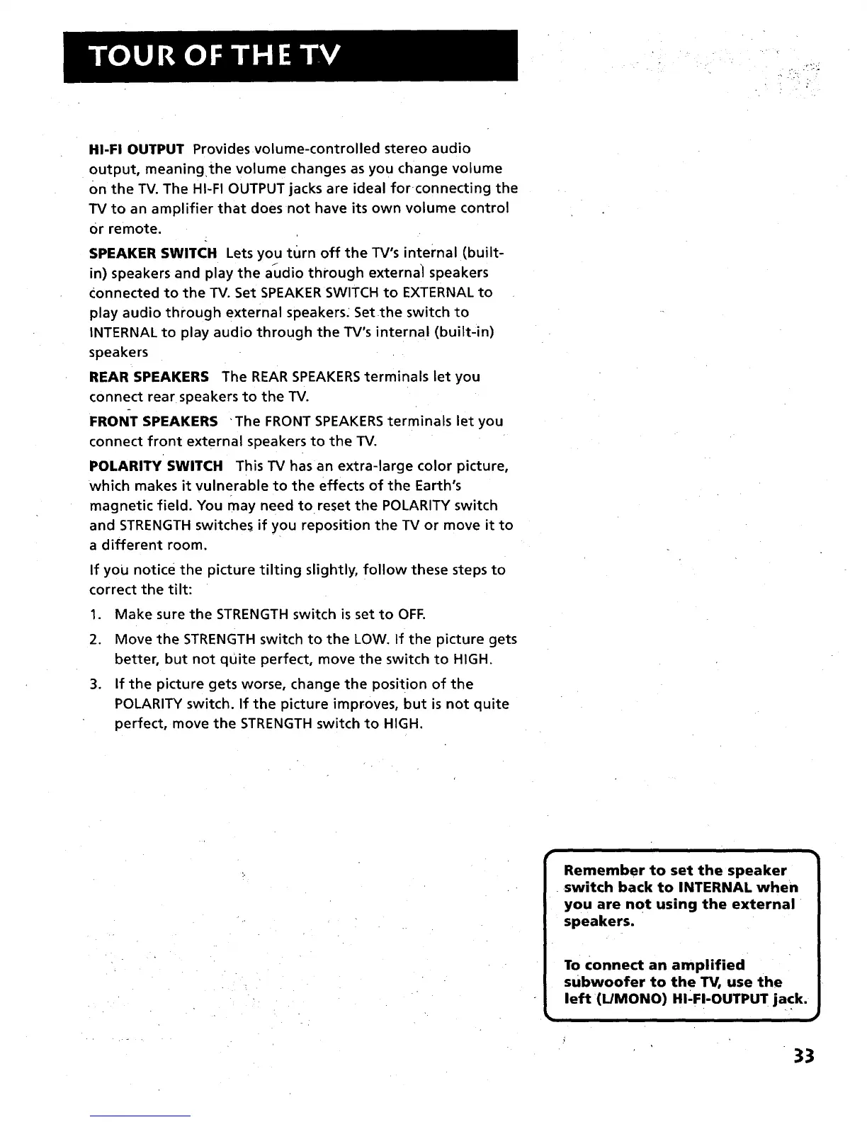 and STRENGTH switches if you reposition the TV or move it to