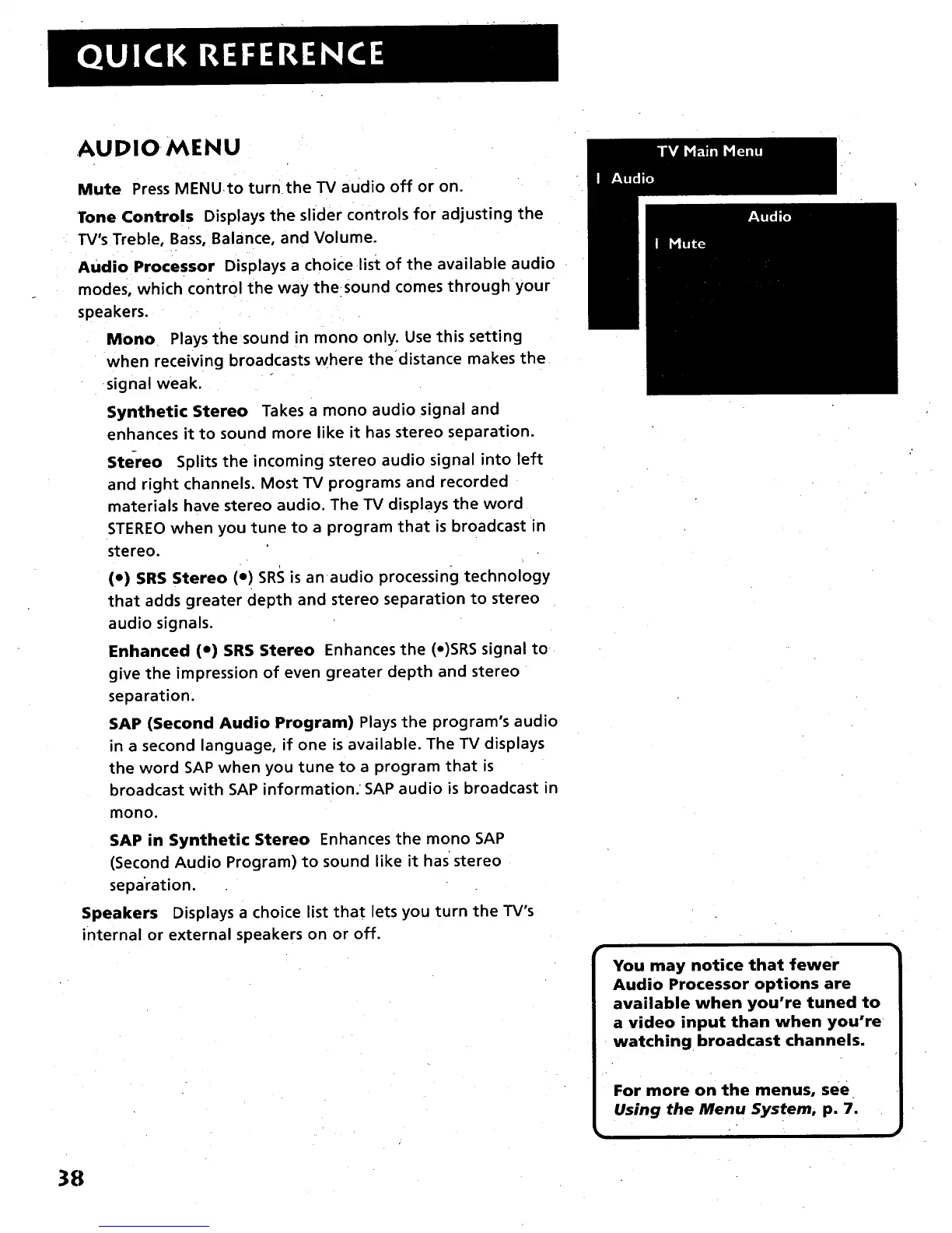 Mute Press MENU.to turn the TV audio off or on.