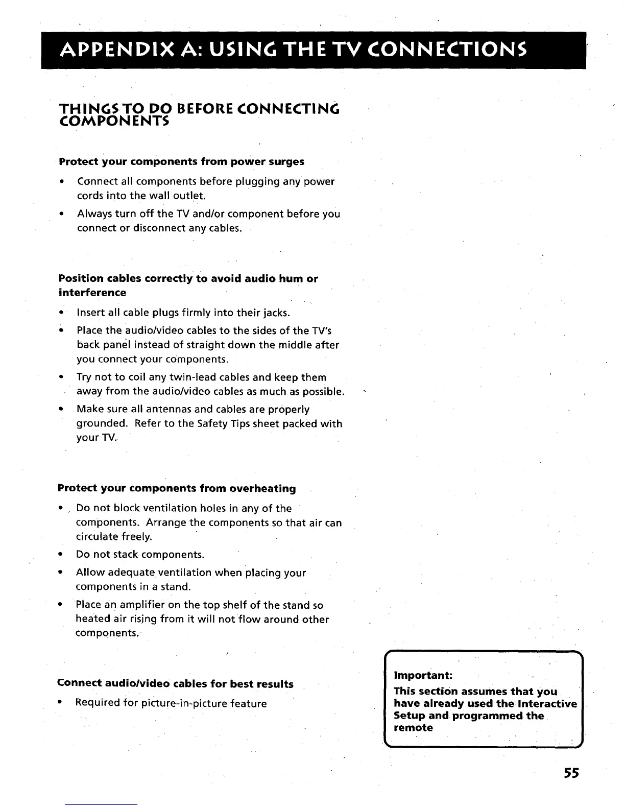 Connect audio/video cables for best results