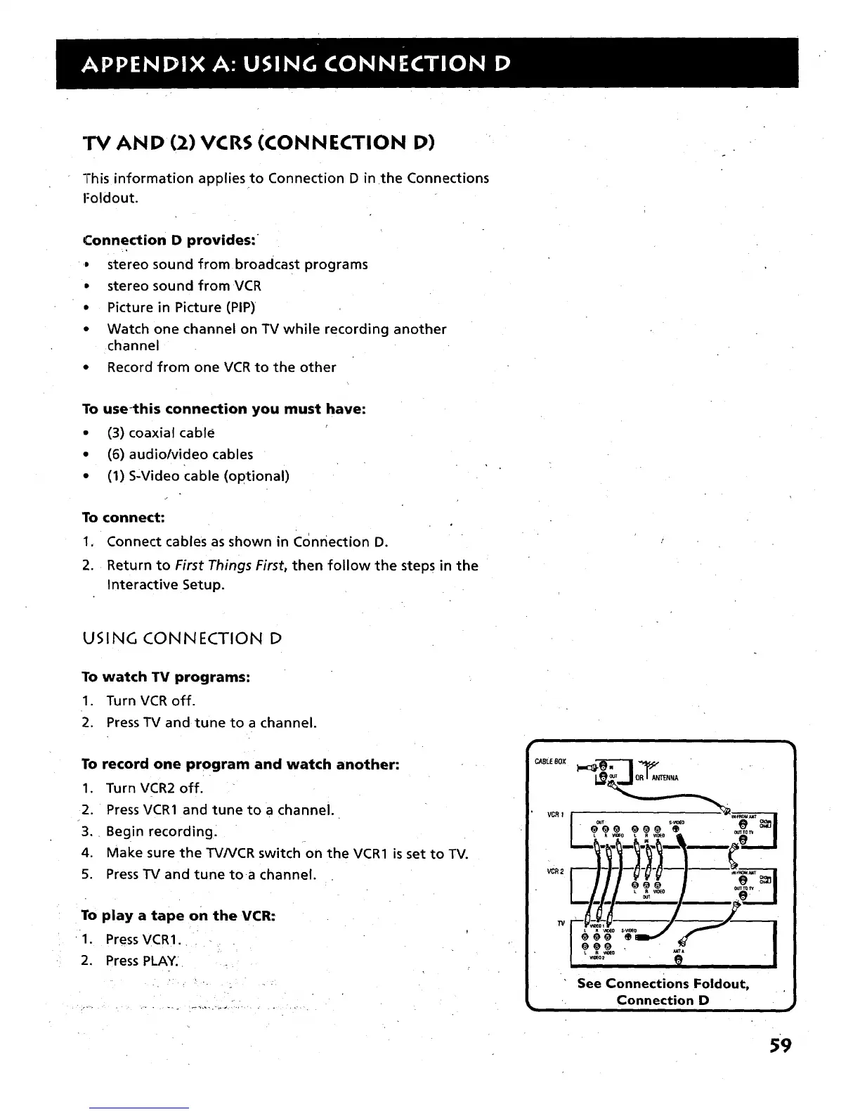 TV AND (2) VCRS (CONNECTION D)