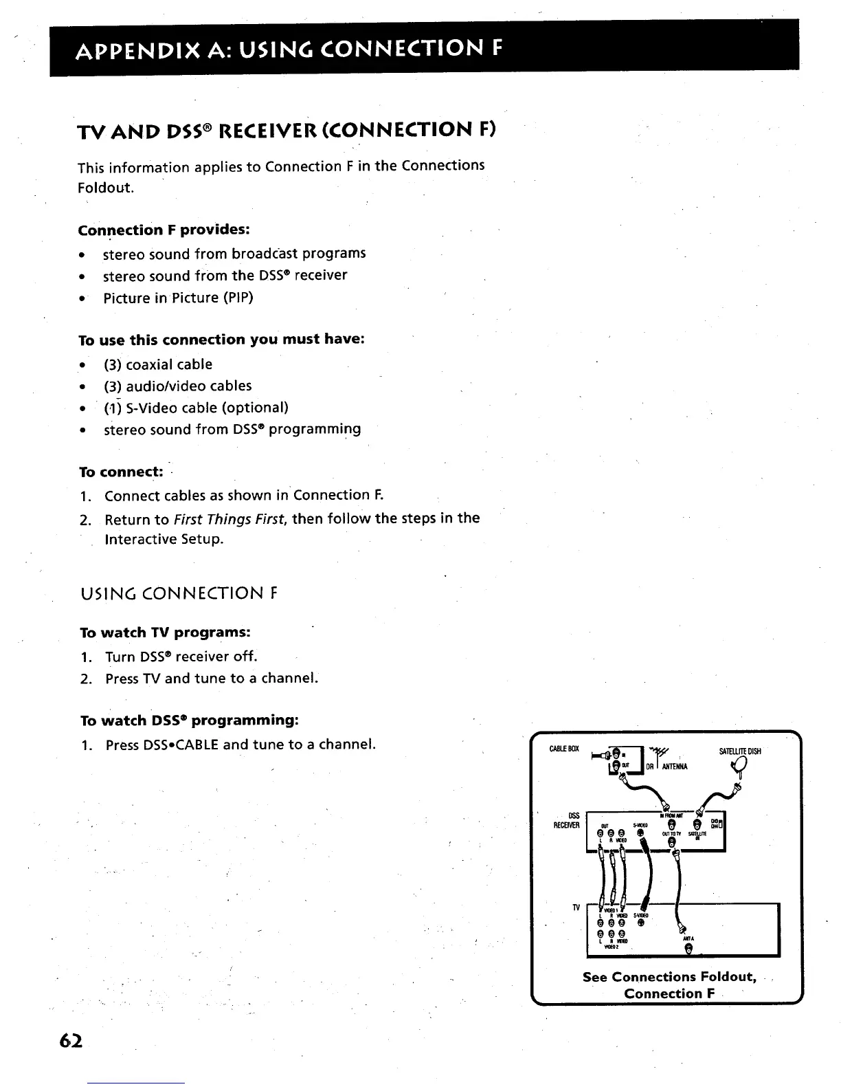 TV AND DSS® RECEIVER (CONNECTION F)