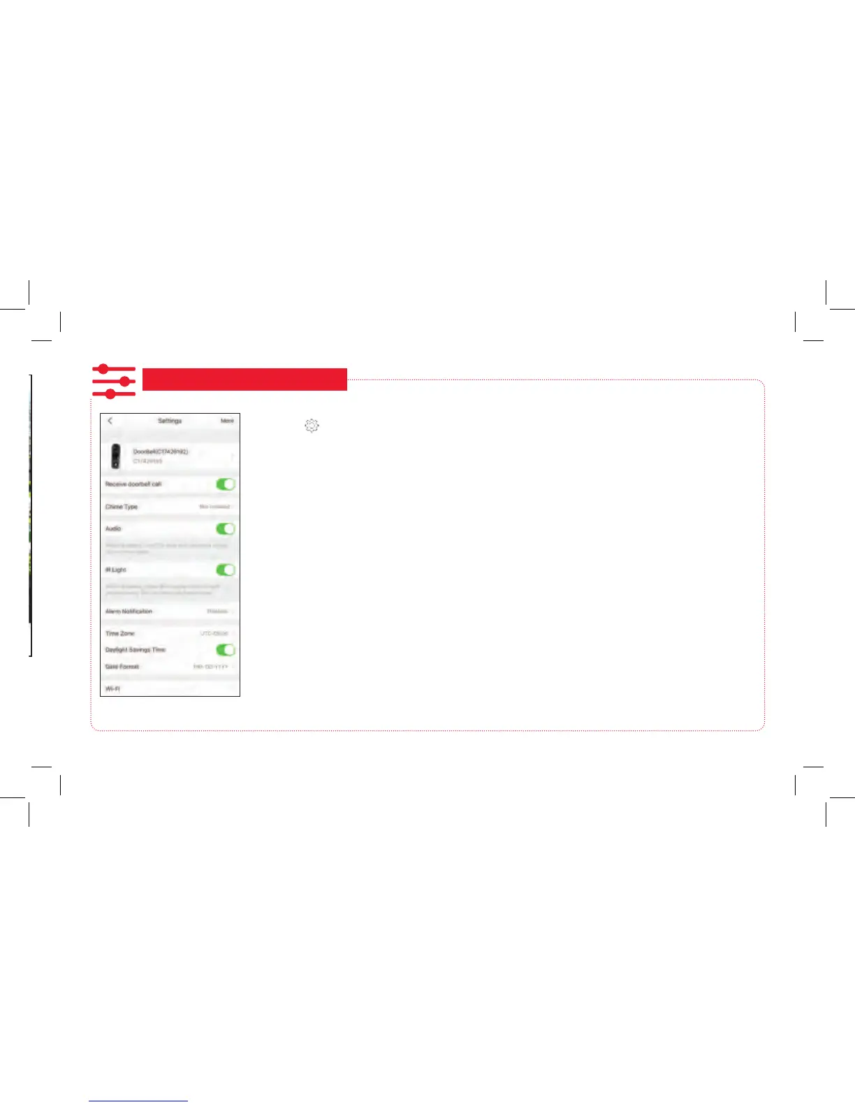 Press the icon in the Live View screen to access the following customizable parameters of your doorbell