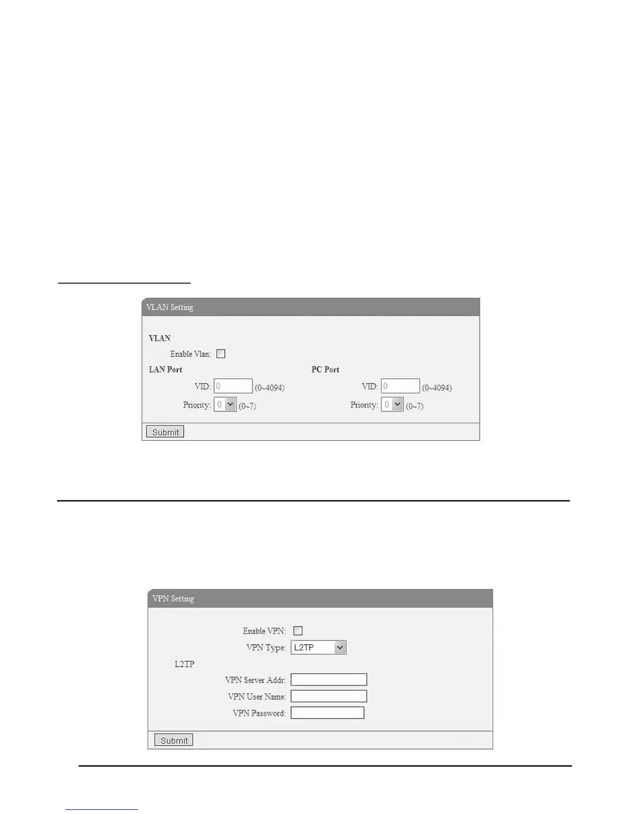 Enable VLAN Enable/disable the VLAN feature for phone and pc