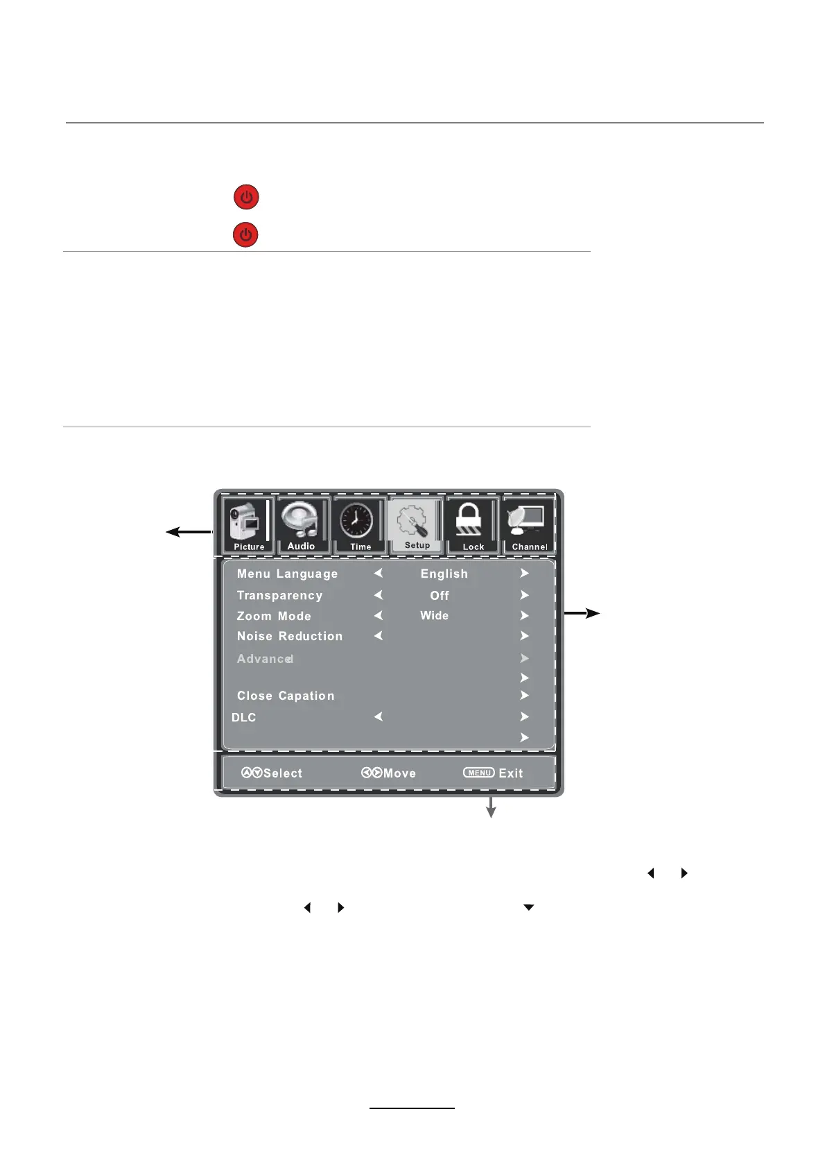 Press CH+ to move up, press CH- move down, press OK to confirm selection.