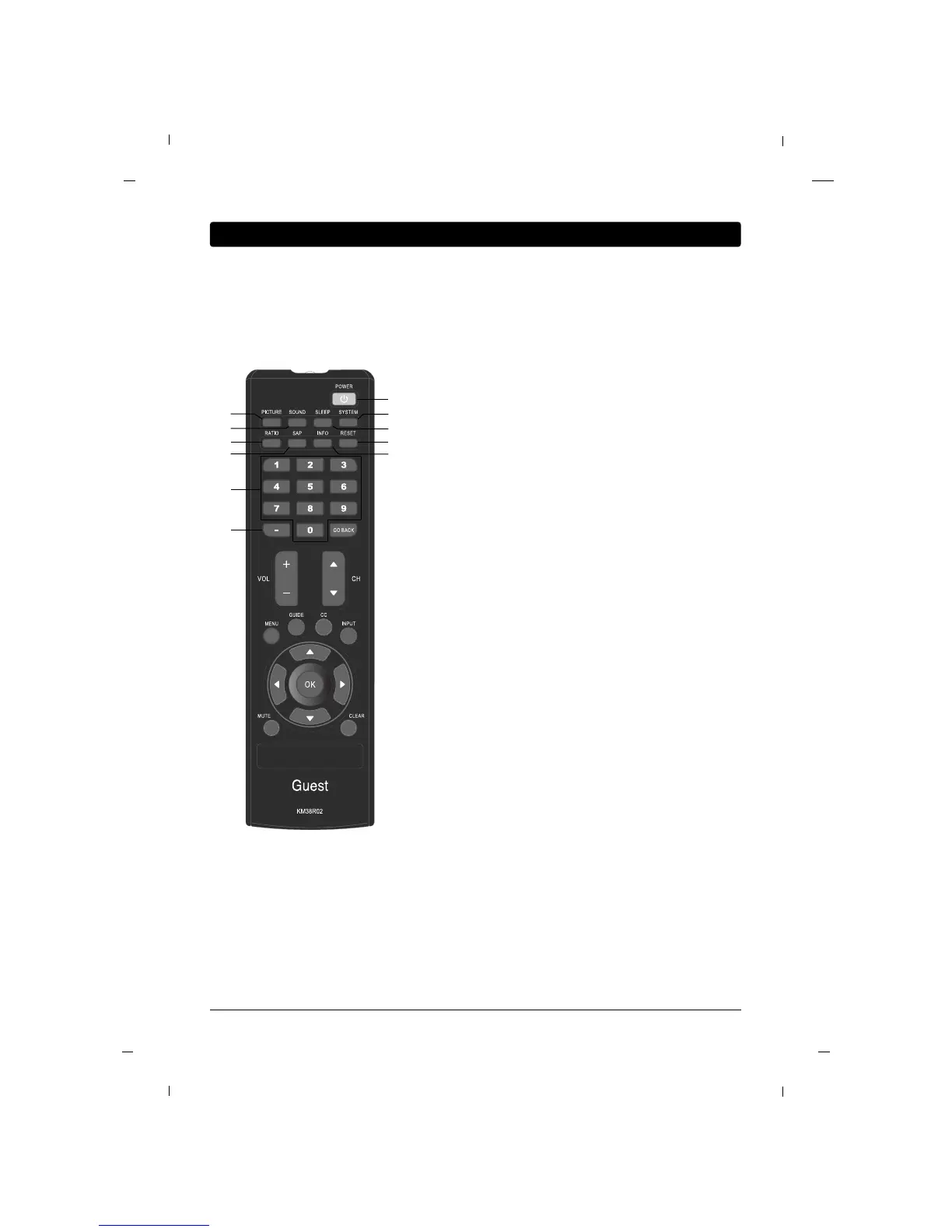 The basic remote control (KM38R02) is used by the viewer for basic operating functions. It is designed so that
