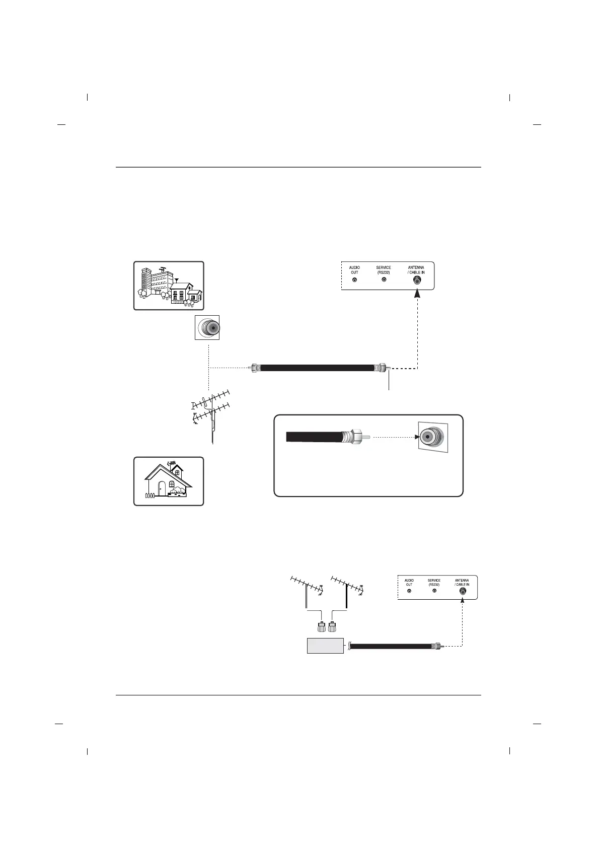 (Connexion à la prise murale reliée à l’antenne extérieure)