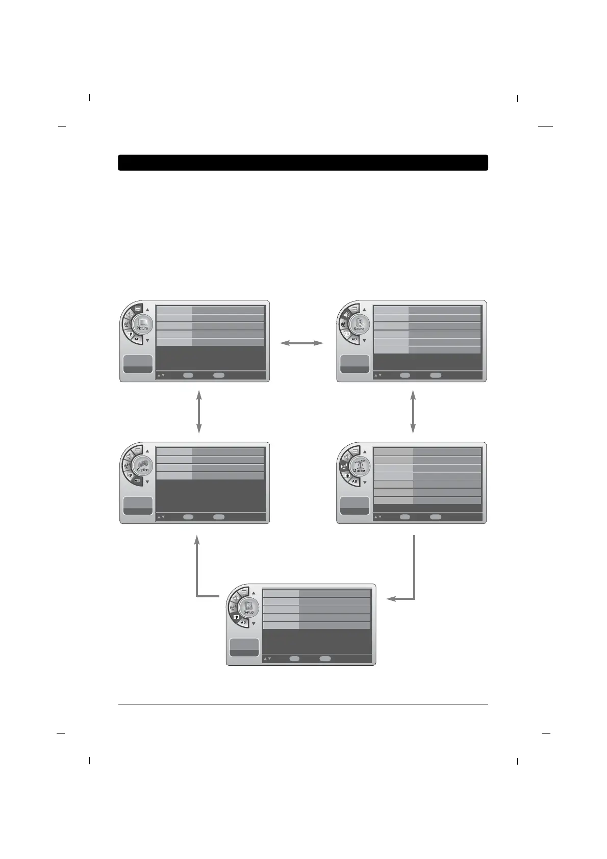 2. Press the OK button and then Down, Up, Left and Right buttons to navigate to the available menus.