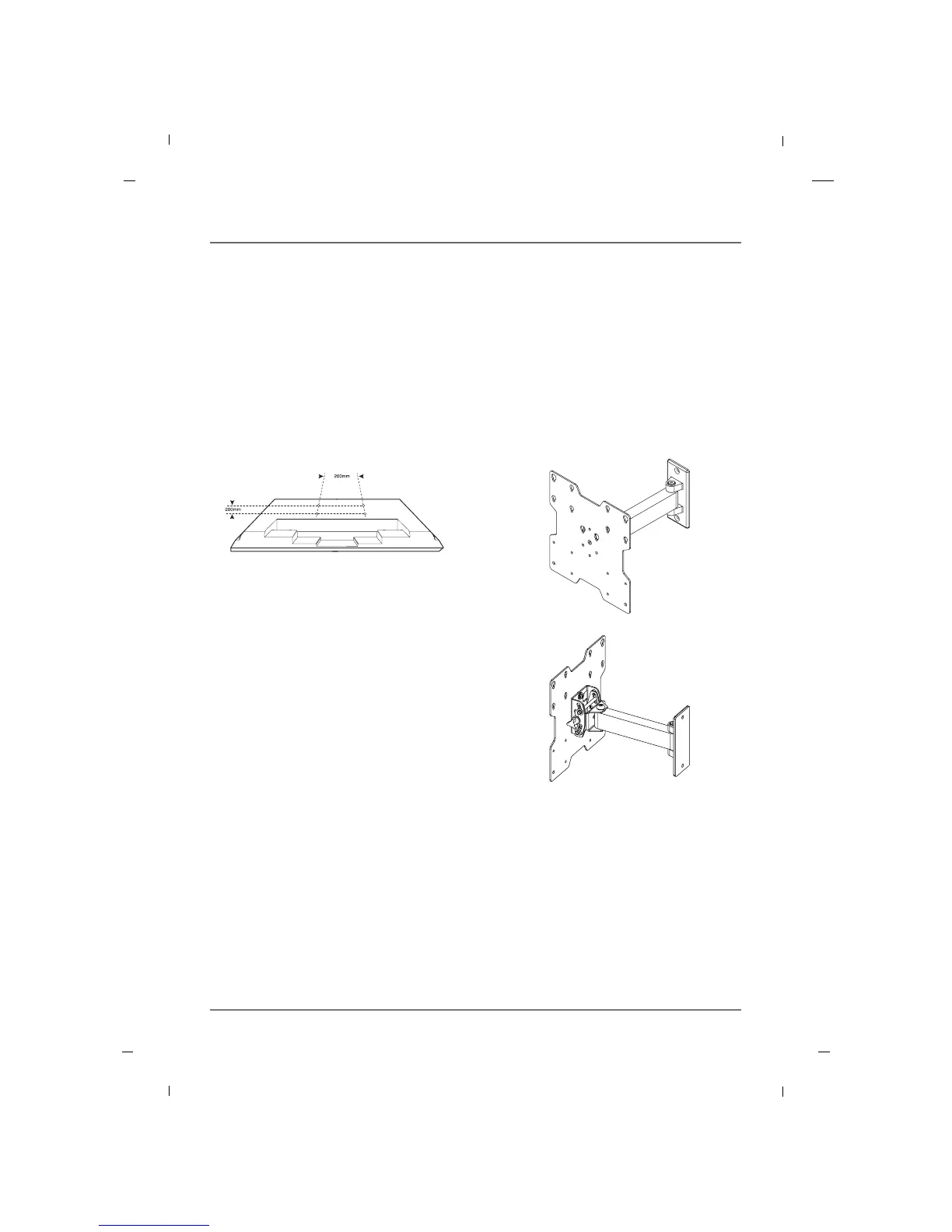 Les exemples suivants concernent des fixations murales de 200 mm conformes à la norme VESA. Compte tenu