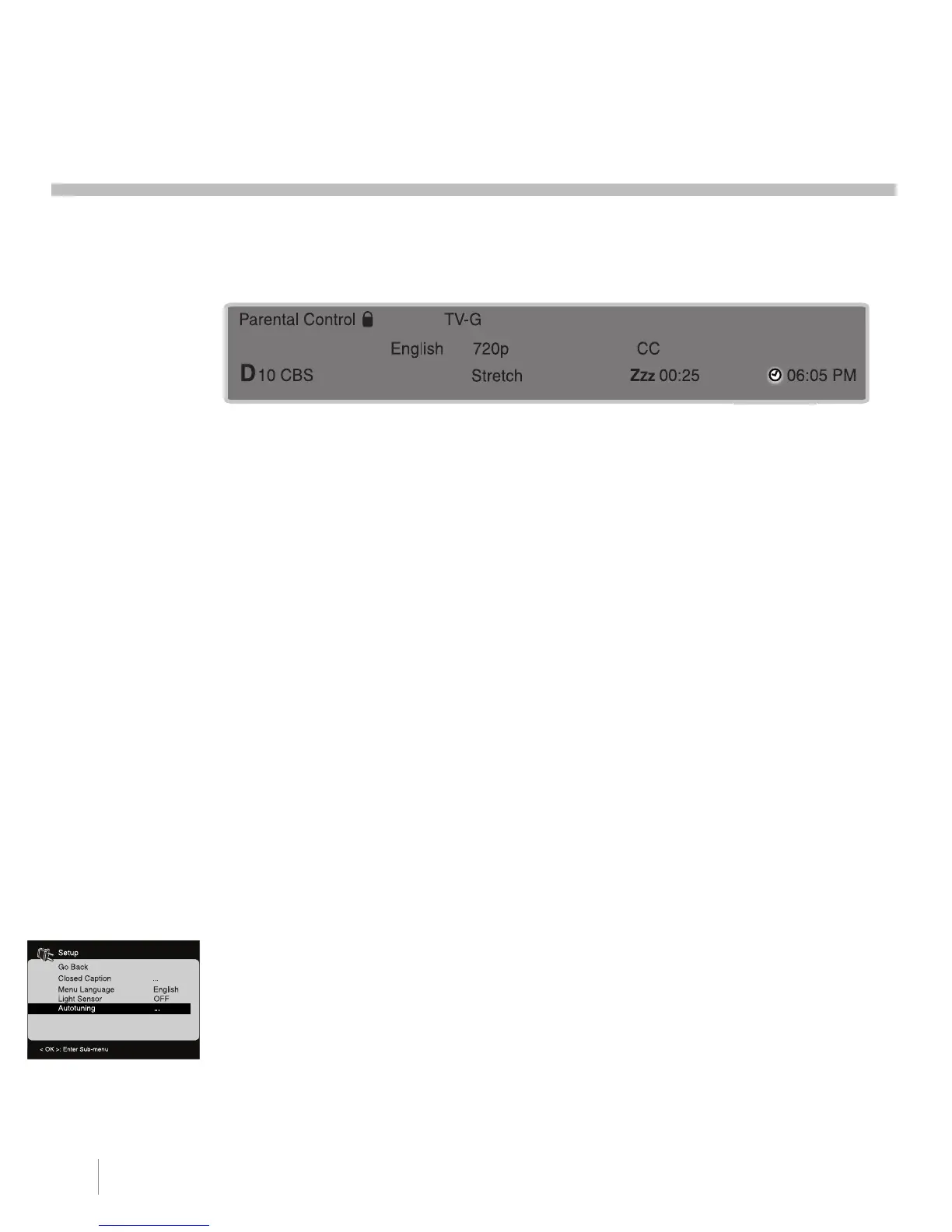 D 10 CBS La “D” indica un canal digital; y una “A” indica un canal analógico. En la pantalla aparecen el