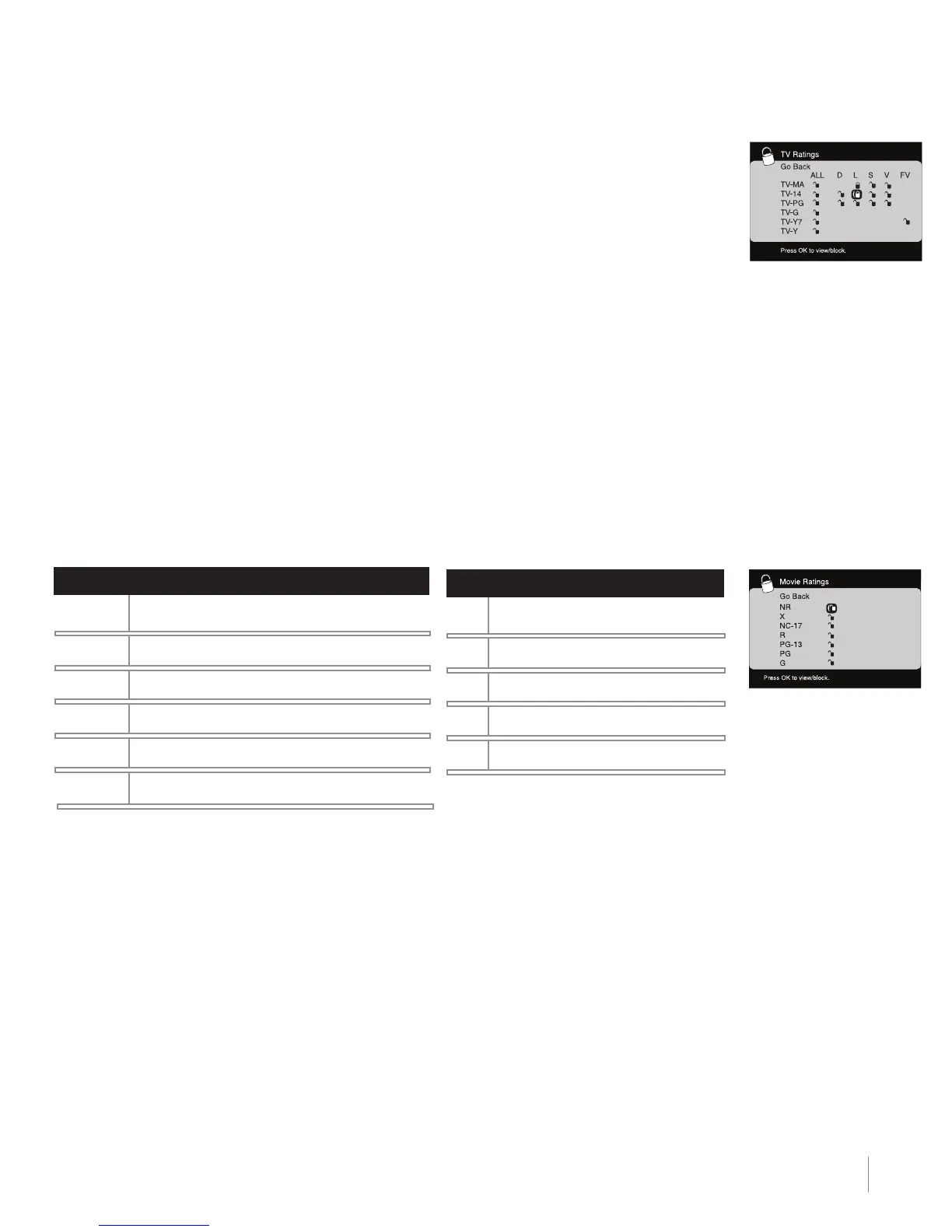 5. Oprima el botón OK para cambiar su estado a bloquear (todas las clasificaciones mayores a la que selec-