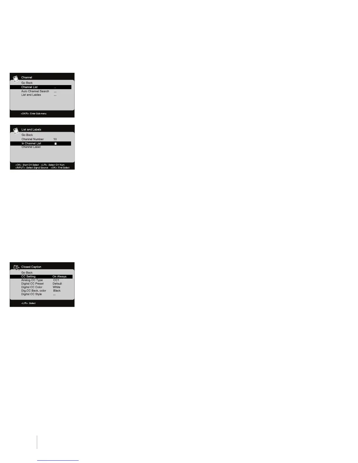 canales. Oprima la flecha hacia arriba o hacia abajo para resaltar un canal y oprima OK para sintonizarlo. Las
