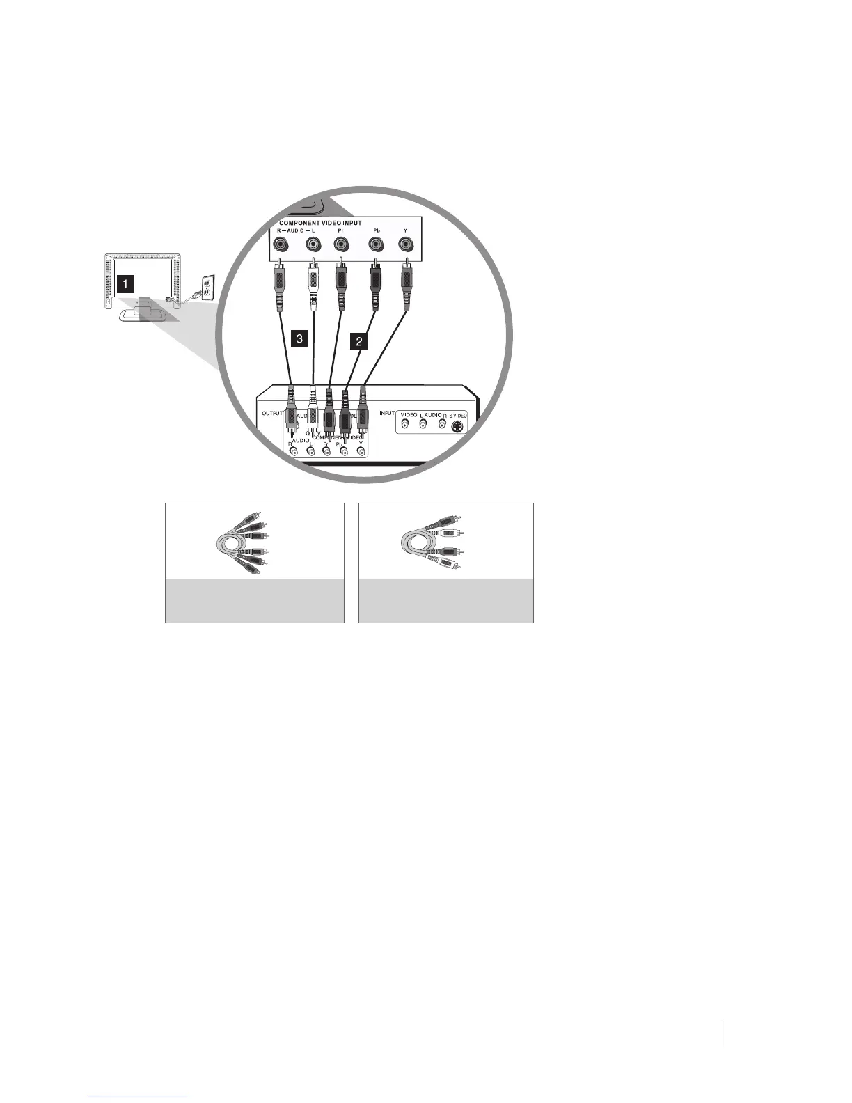 Voici un exemple de connexion à l’aide de prises vidéo à composantes. Voyez à la page 12 les