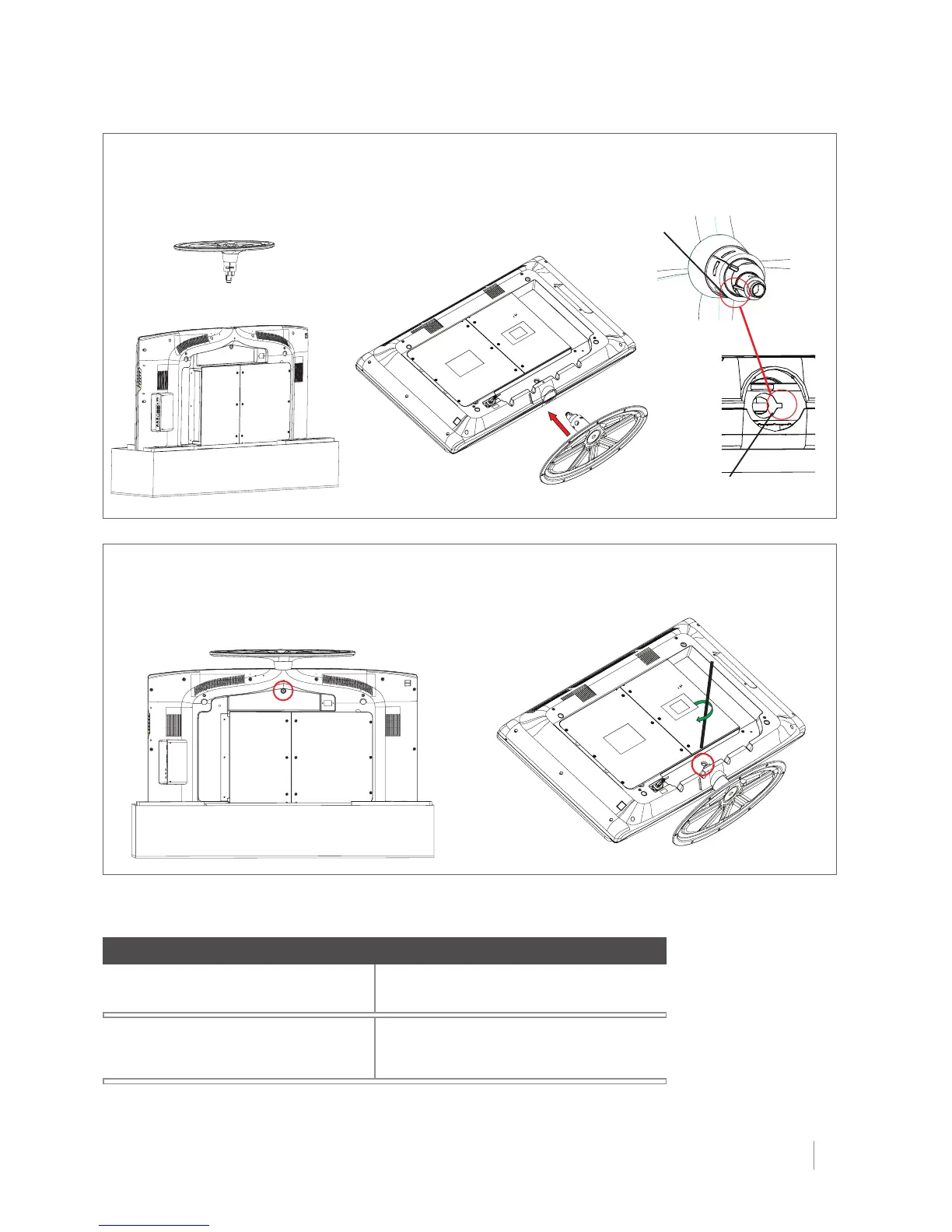 Pour fixer le support de table au boîtier du téléviseur, introduisez