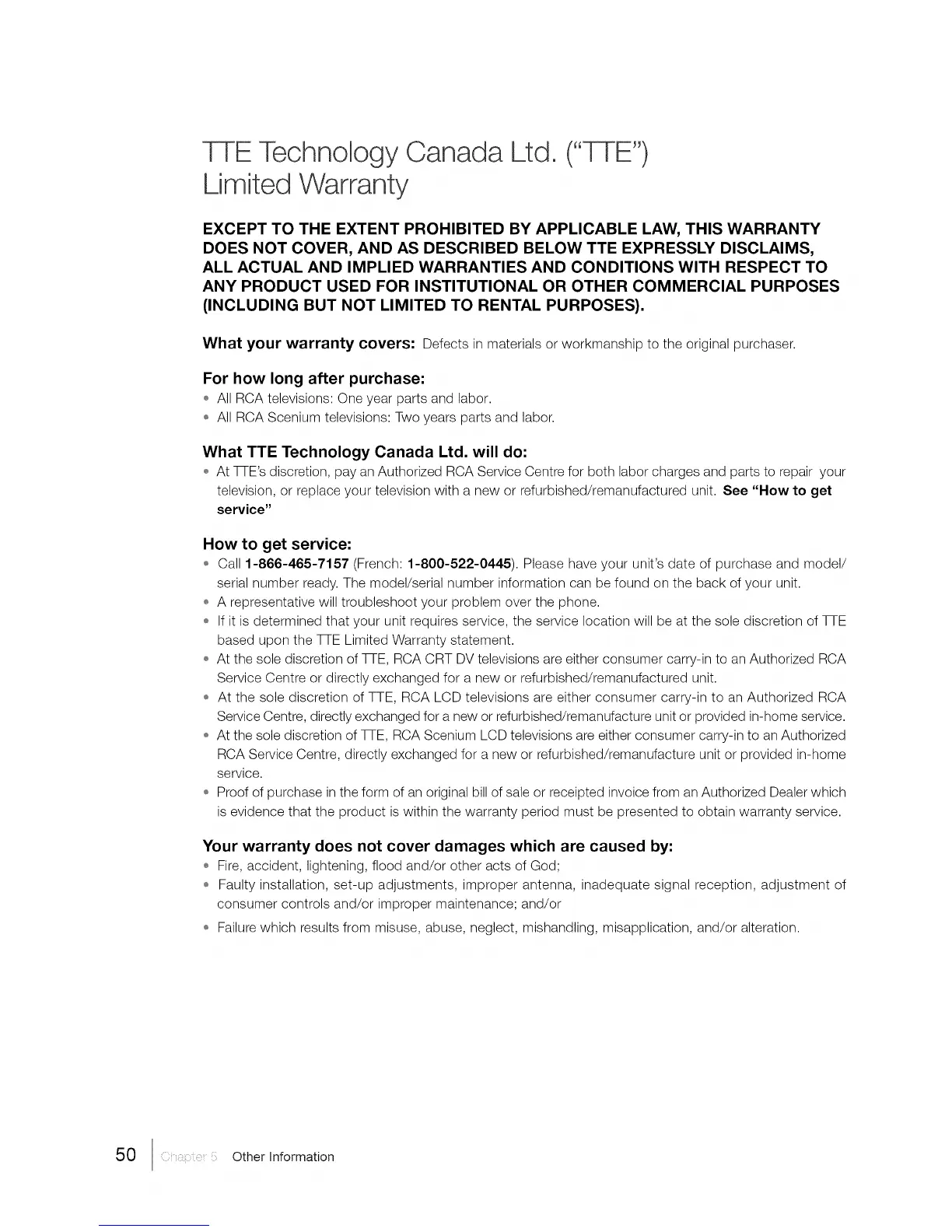 o At the sole discretion of TTE, RCA LCD televisions are either consumer carry-in to an Authorized RCA