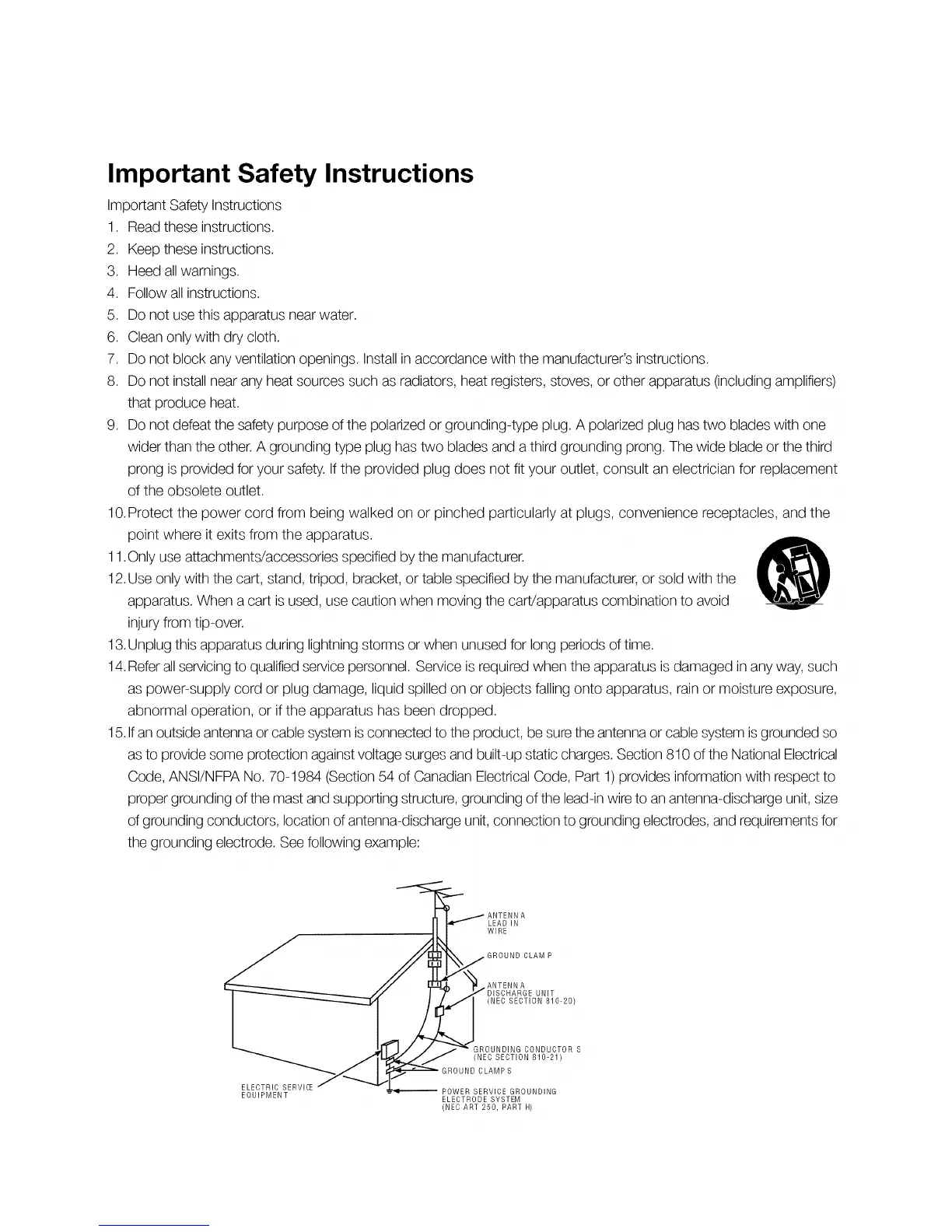 15.Ifan outside antenna or cable system is connected to the product, be sure the antenna or cable system is grounded so