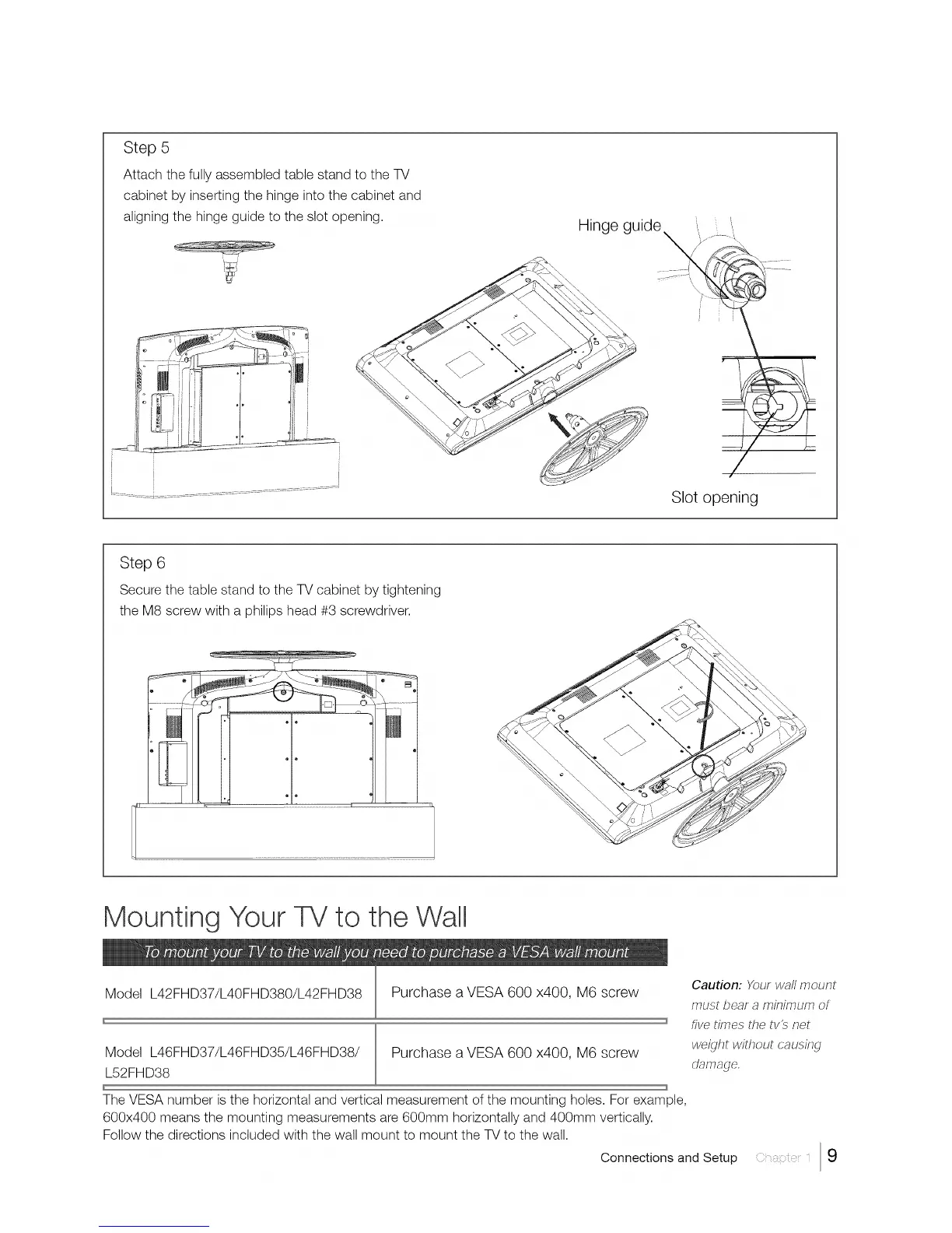 Model L42FHD37/L40FHD380/L42FHD38 Purchase a VESA 600 x400, M6 screw