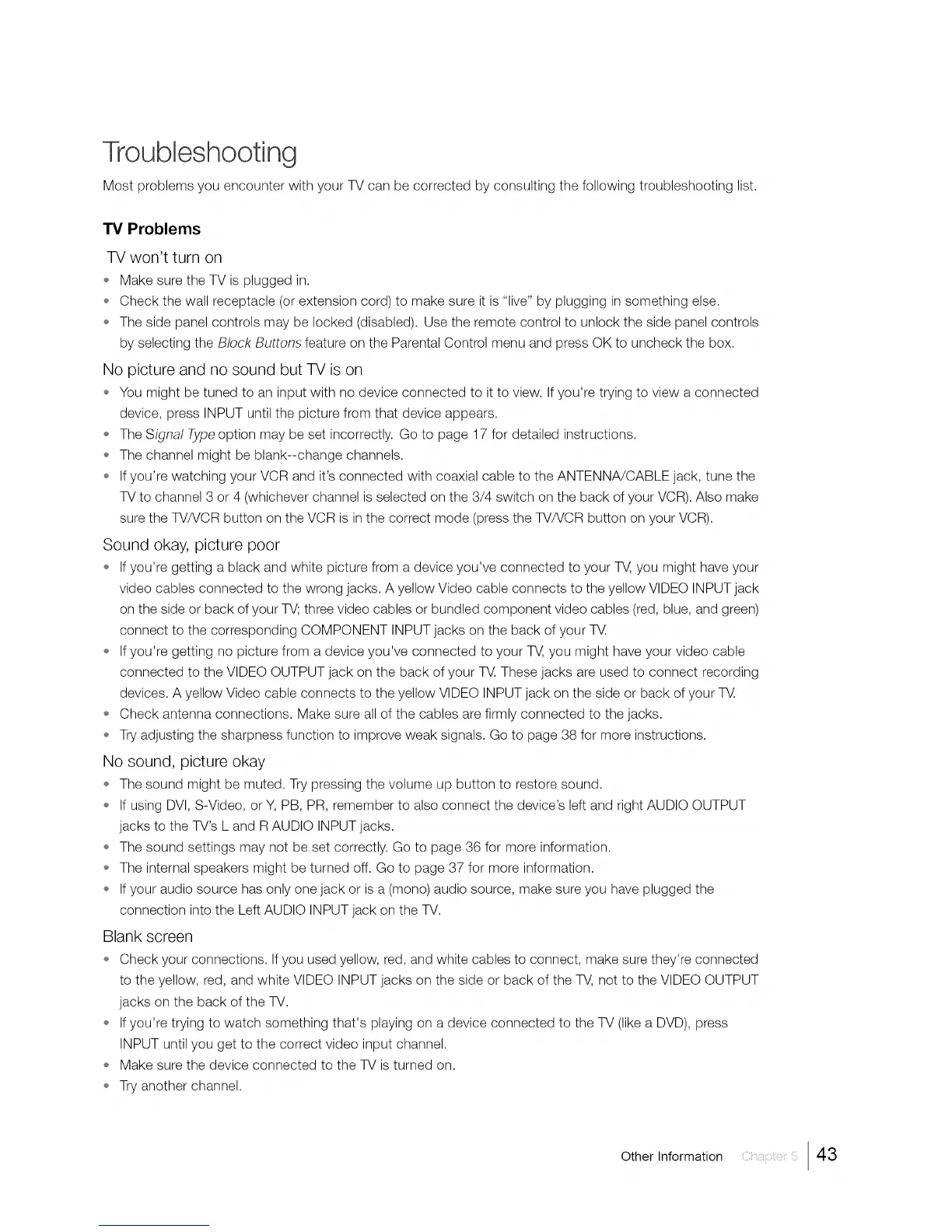 Most problems you encounter with your TV can be corrected by consulting the following troubleshooting list.