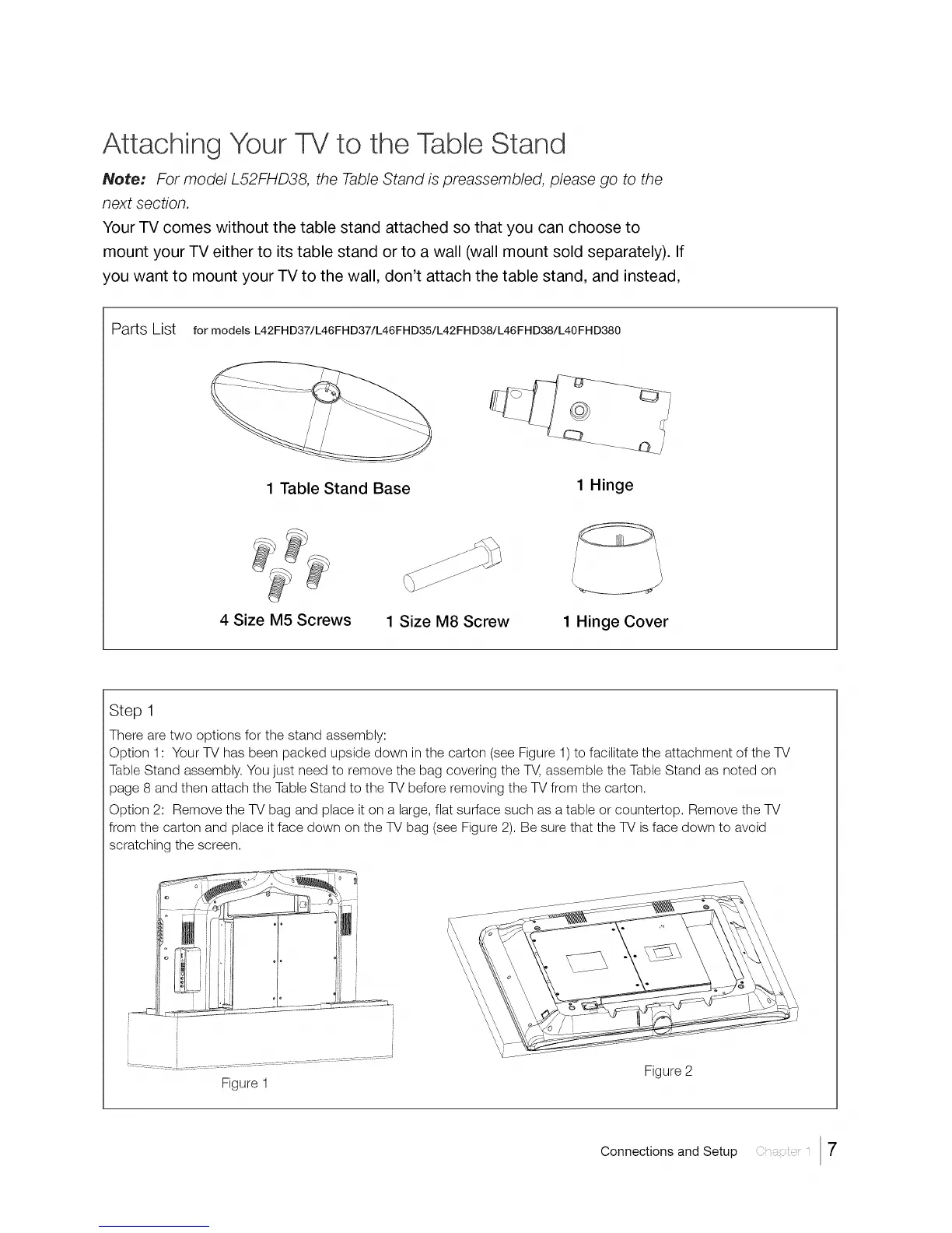 Nete: For model L52FHD38, the Table Stand is preassembled, please go to the