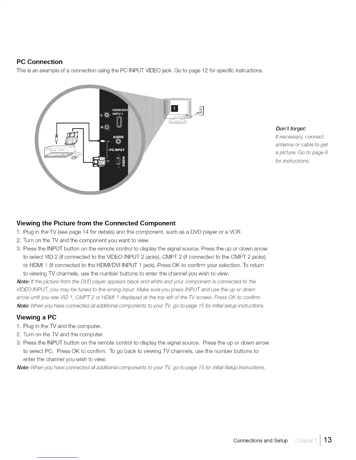 This is an example of a connection using the PC INPUTVIDEOjack. Go to page 12 for specific instructions.