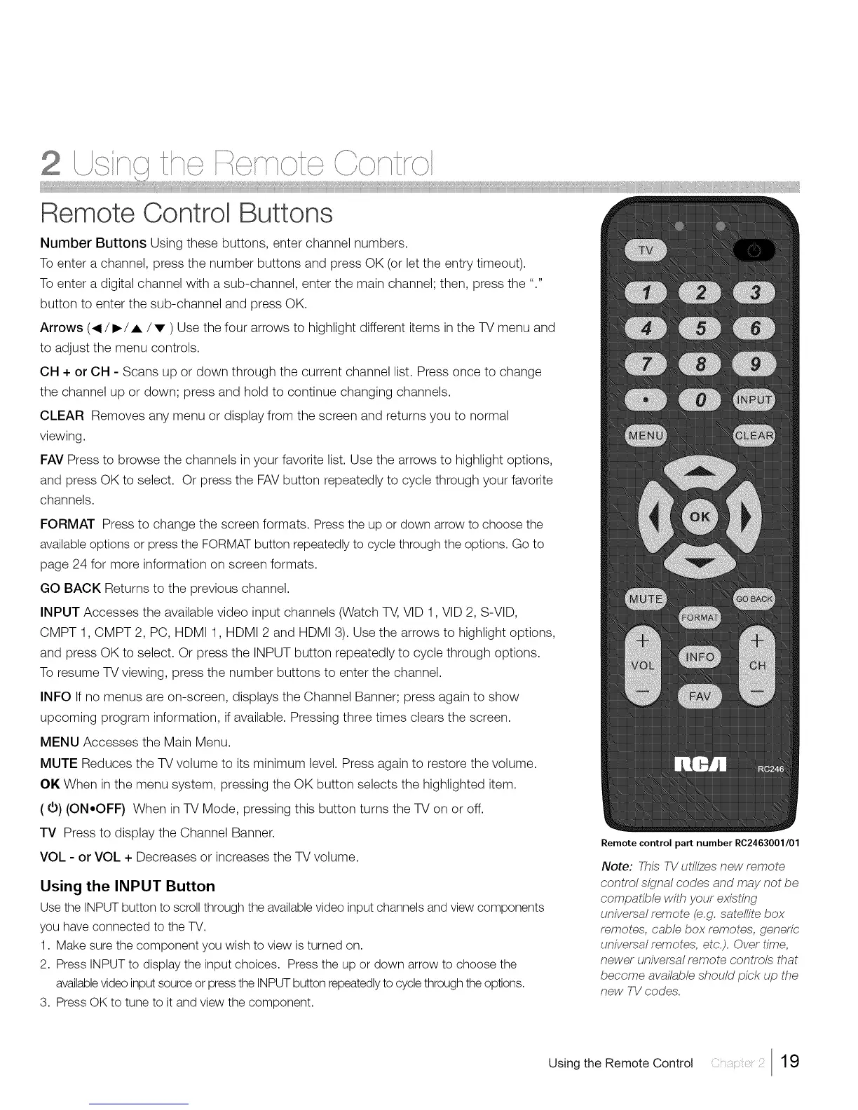 INPUT Accesses the available video input channels (Watch TV, VID 1, VlD 2, S-VlD,