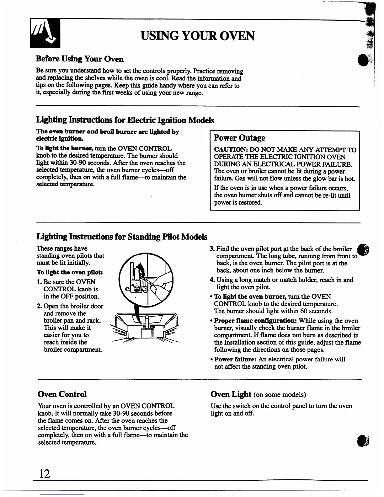 The oven or broiler cannot be lit during a power