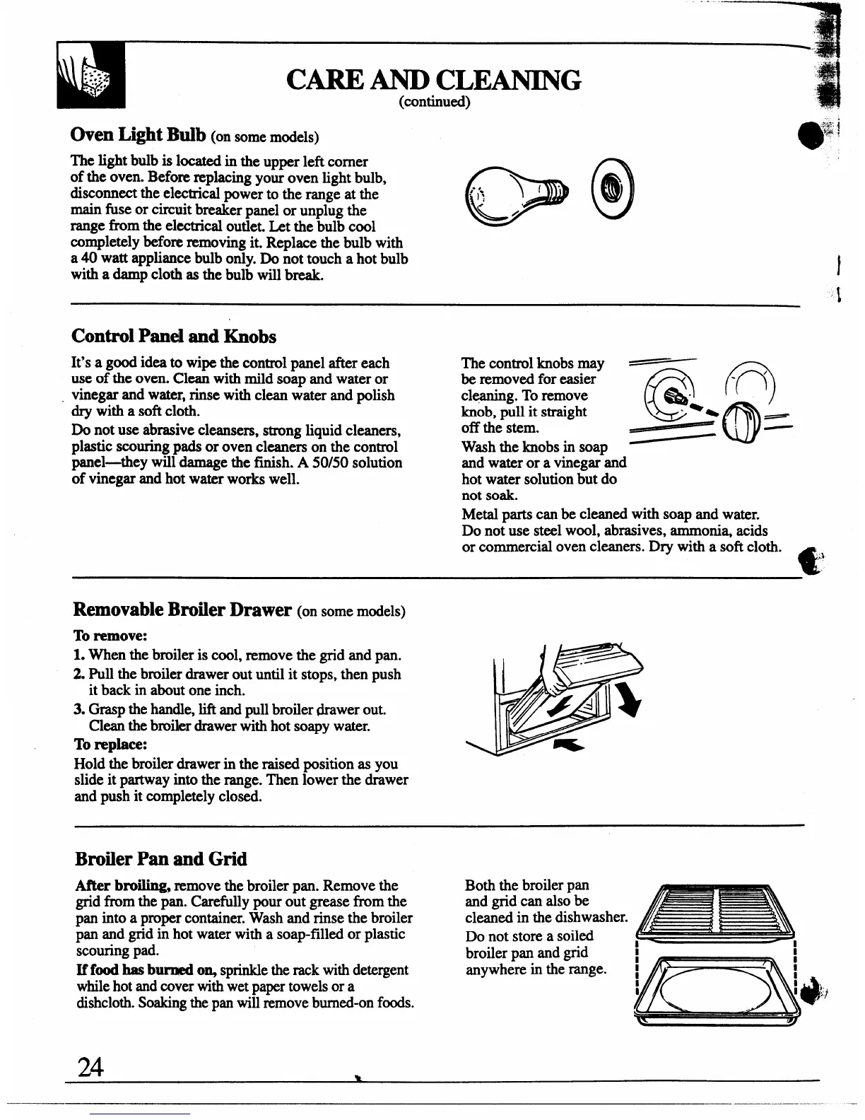 plastic scouring pads or oven cleaners on the control Wash the knobs in soap