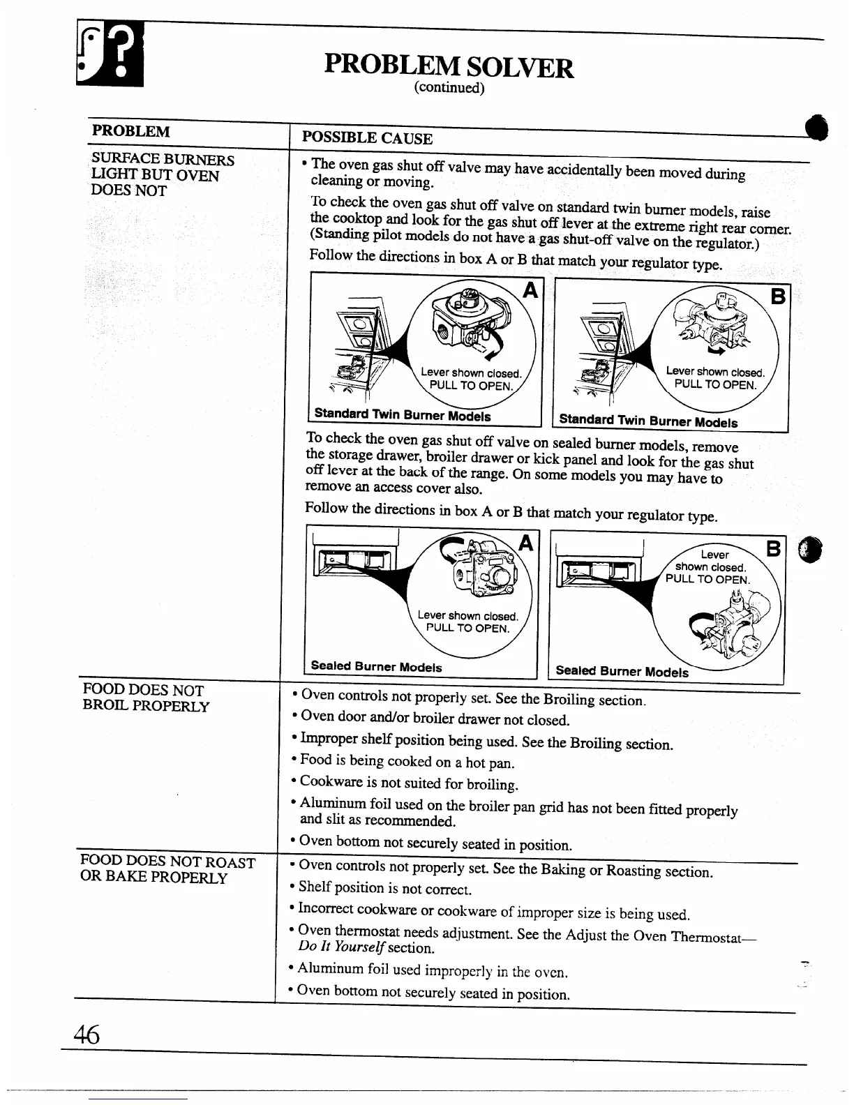 the storage drawer, broiler drawer or kick panel and look for the gas shut