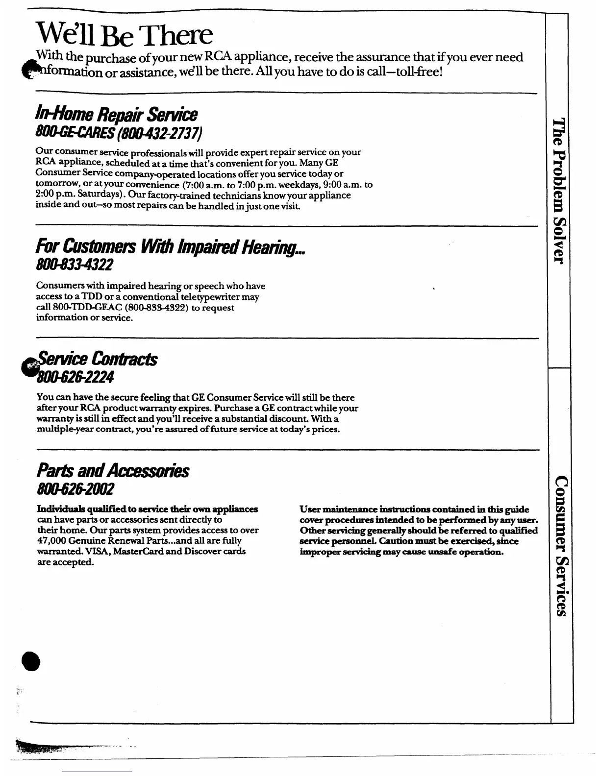 With he pWChw~ of YOW new RCA appliance, receive the assurance that ifyou ever need