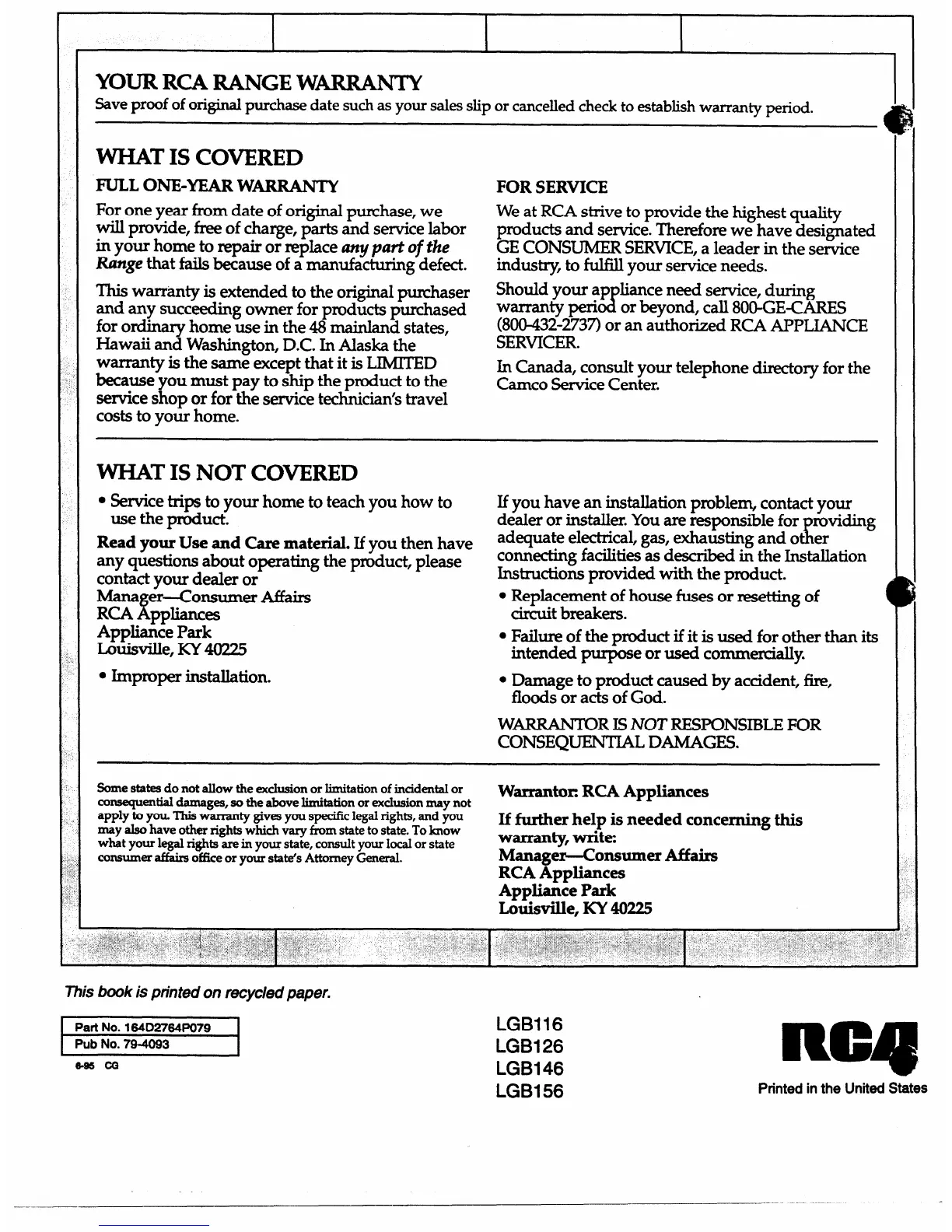 (8m2-2T37) or an authorized RCA APPLIANCE