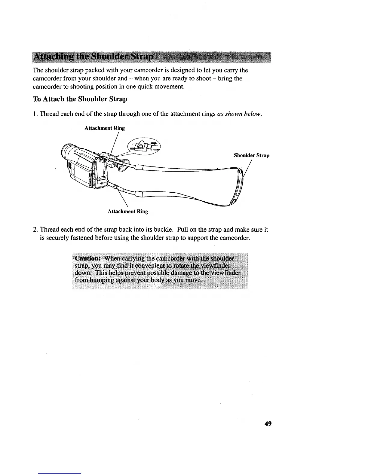 Theshoulderstrappackedwith your camcorderis designed to let you carry the