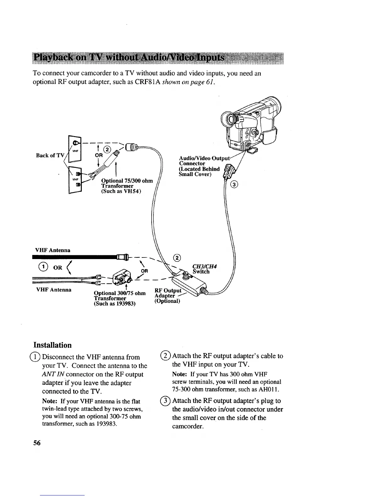 optional RF output adapter, such as CRF81A shown on page 61.
