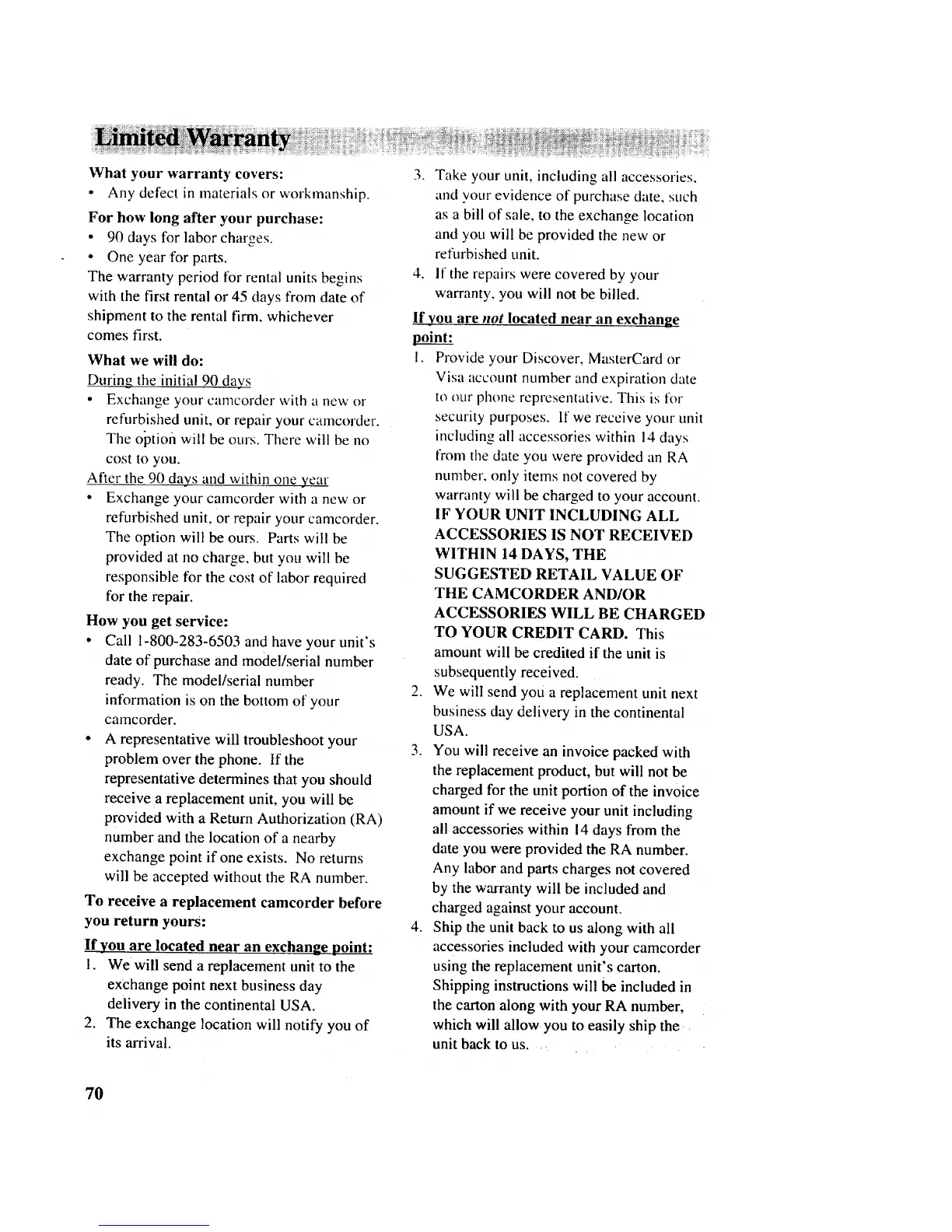 receive a replacement unit, you will be