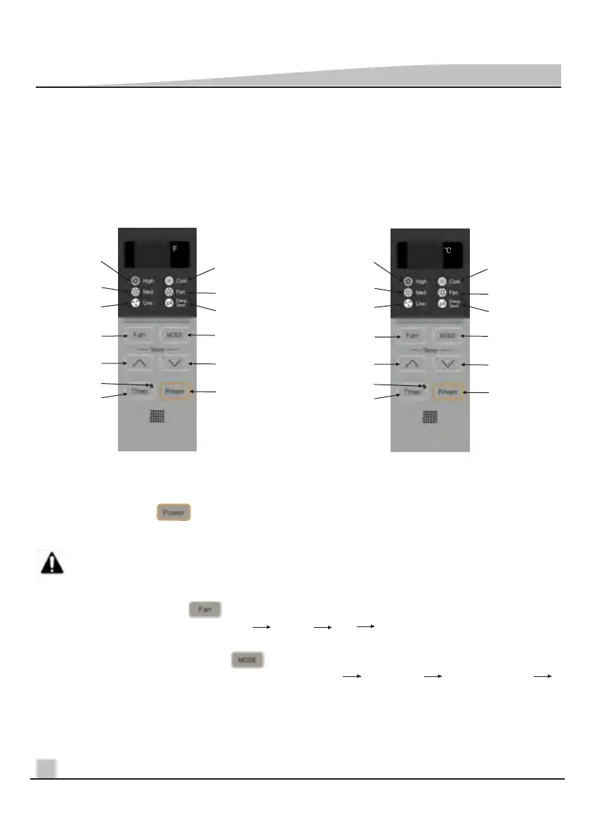 Use to select the operation mode in the order of: COOL mode FAN mode ENERGY SAVER