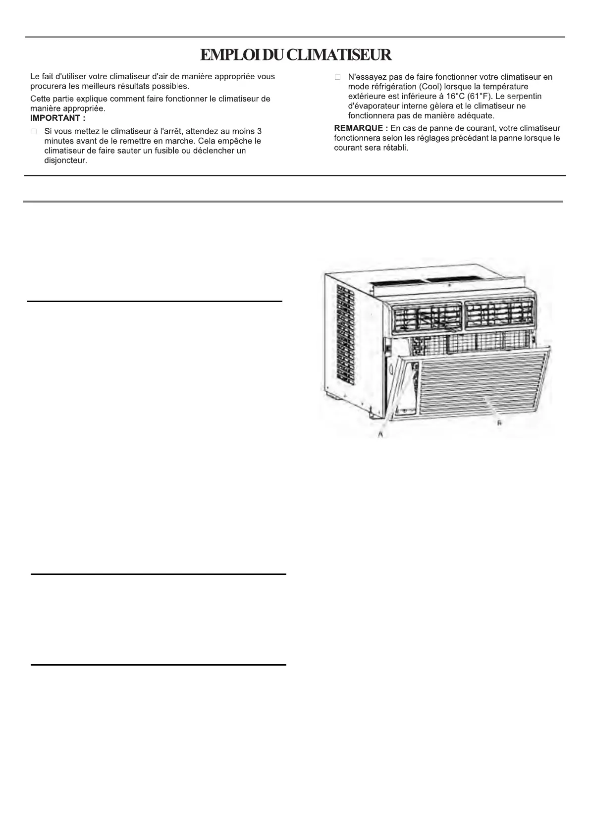 REMARQUE : Ne faites jamais fonctionner un climatiseur d'air